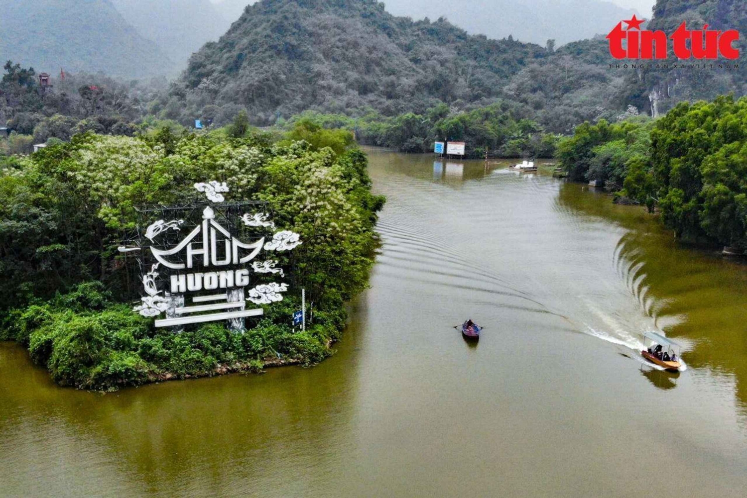 På vej til Parfume-pagoden kan du se landskabet ændre sig fra en gammel by til majestætiske og fredelige naturlandskaber, de smukke naturbilleder er skabt af grønne rismarker, massive bjerge og rustikke huse.
