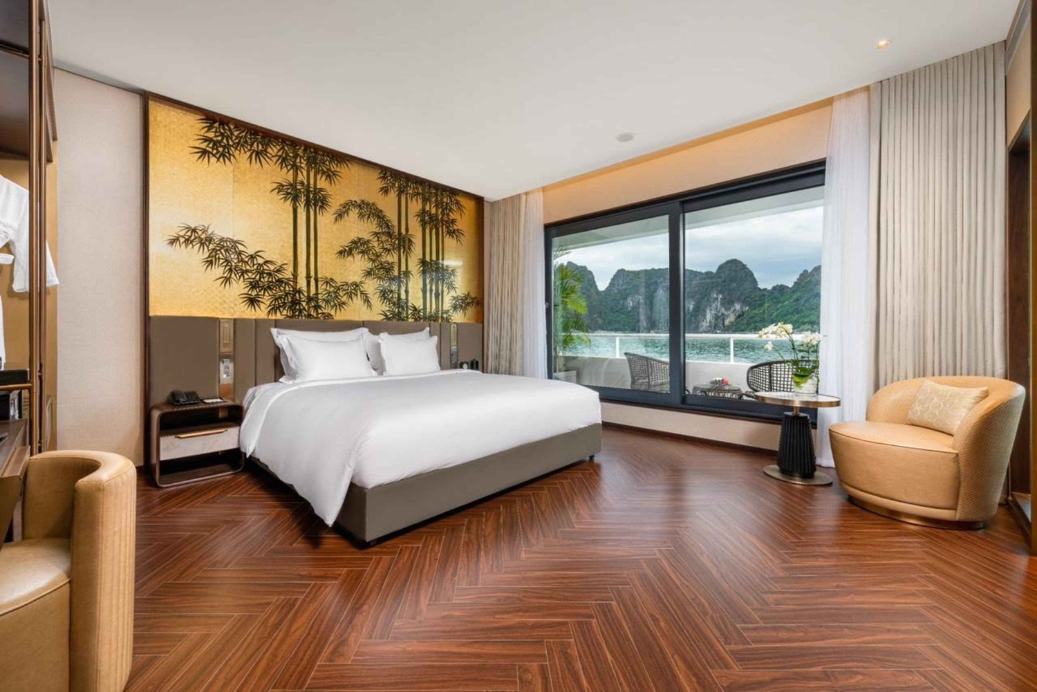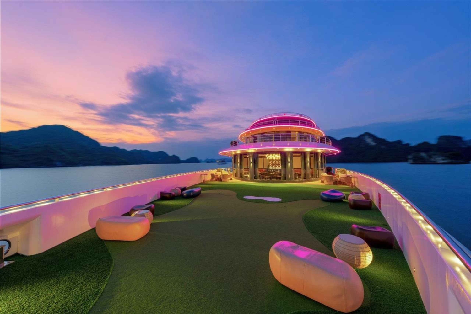- Nyd den fantastiske udsigt over Halong-bugten fra krydstogtbådens soldæk