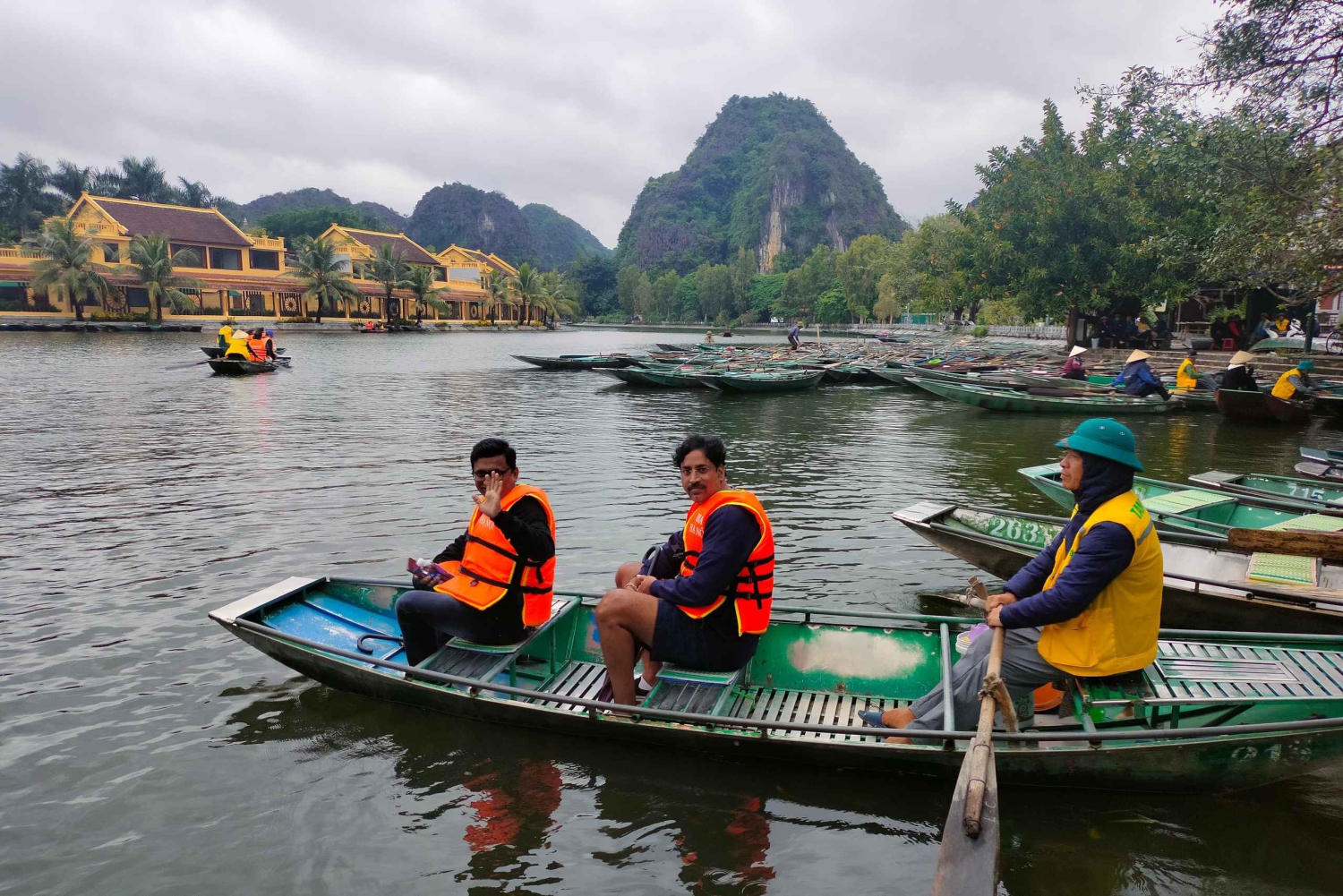 13:00 - Vi går om bord på en lille sampan for at besøge Tam Coc, som bogstaveligt talt betyder 'tre huler' (1,5 times sejltur). Med udsigt til Halong-bugten med majestætiske kalkstensklipper og mystiske huler samt landskaber som fredelige vandløb, rismarker og øde grønne marker har Tam Coc virkelig det hele. Du vil mærke den friske luft og de fredfyldte øjeblikke, og det er en god mulighed for fotoelskere, som kan fastfryse de særlige øjeblikke og landskaber.