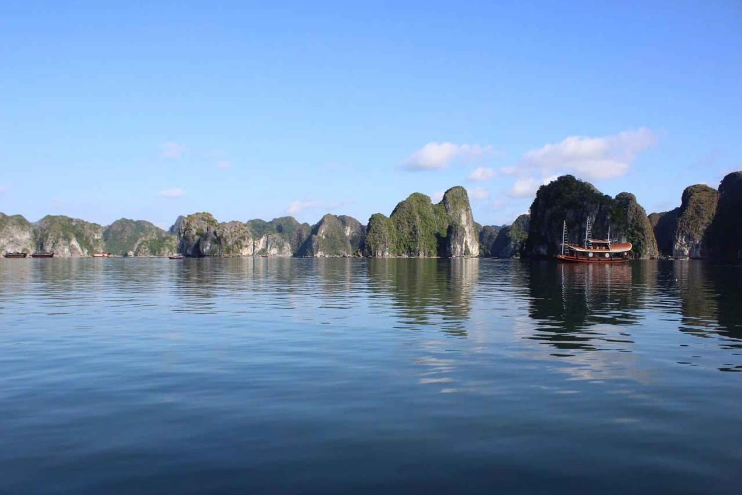 Oplev den smukke Lan Ha-bugt med de vidunderlige kalkstenklipper, der rejser sig fra det krystalklare vand.