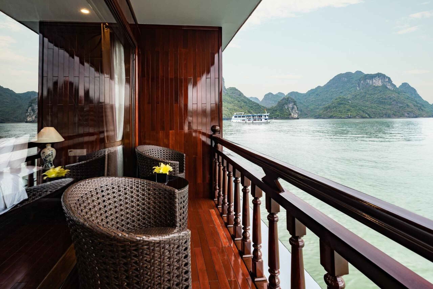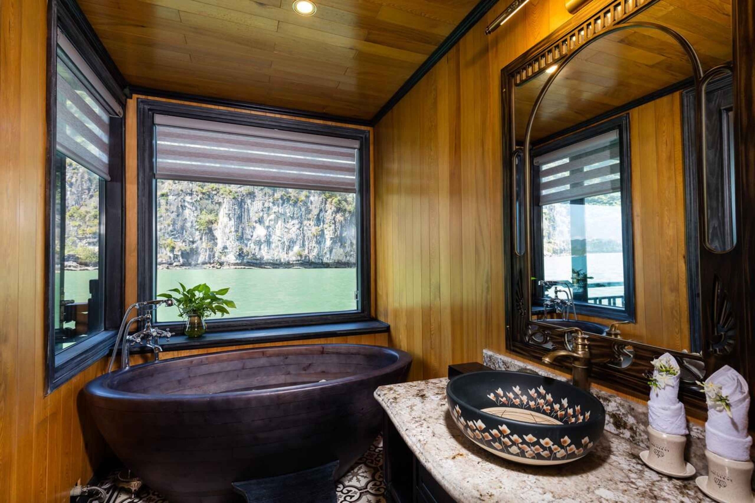 Tilbring natten i Ha Long-bugten i et værelse med privat balkon og badekar på et 5-stjernet krydstogtskib.