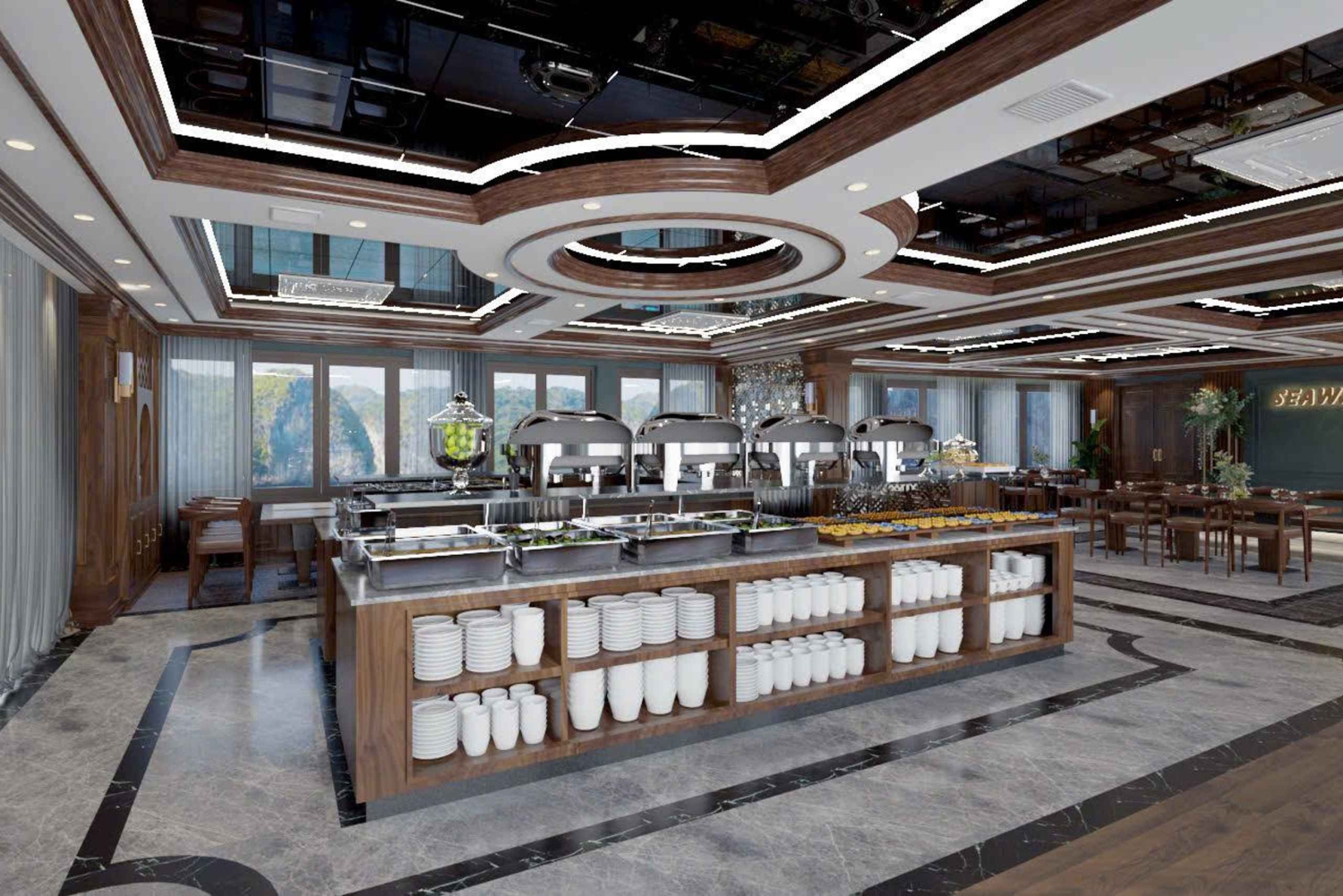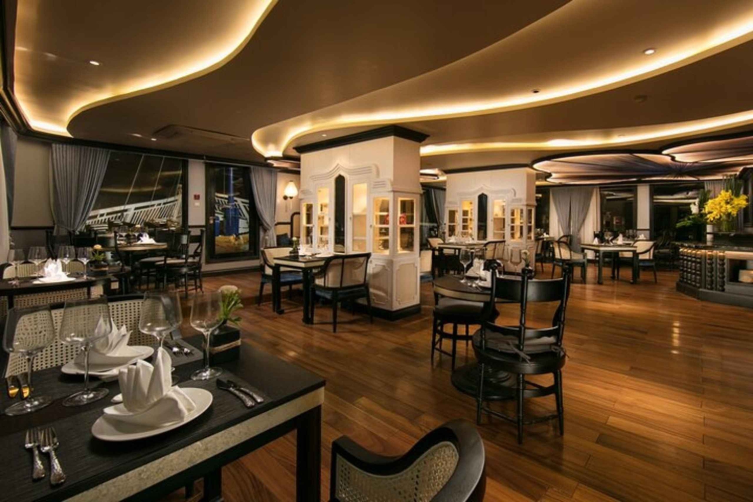 Madlavningsdemonstrationen er en aktivitet om bord, der ikke kun giver passagererne mulighed for at smage på lækker mad, men også lære mere om den vietnamesiske madkultur. Krydstogtkokken viser og vejleder dig i, hvordan man tilbereder traditionelle vietnamesiske retter, såsom friske eller tørrede forårsruller, og/eller hvordan man skærer forskellige slags grøntsager og frugter. 19:00 | Nyd en deluxe-middag