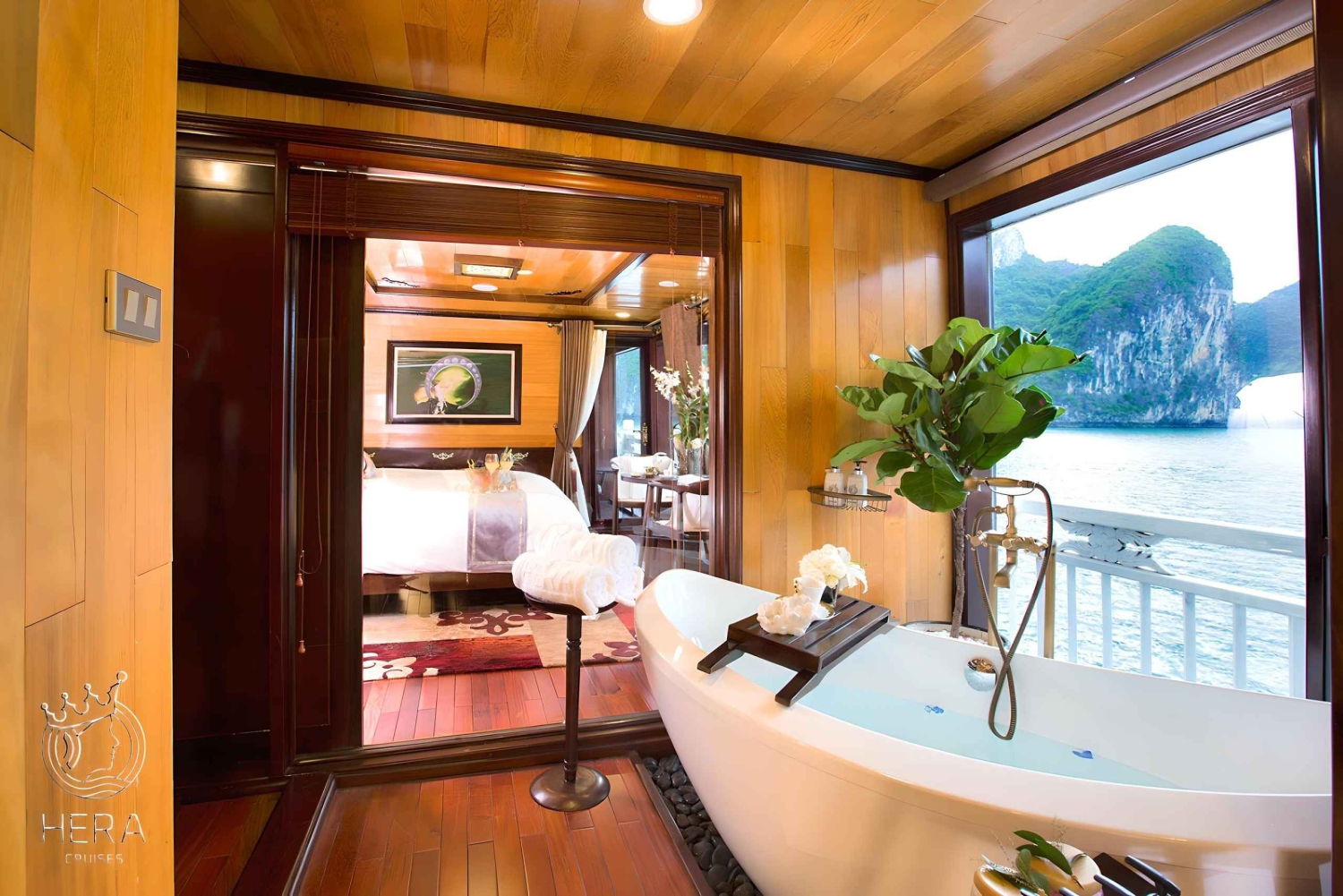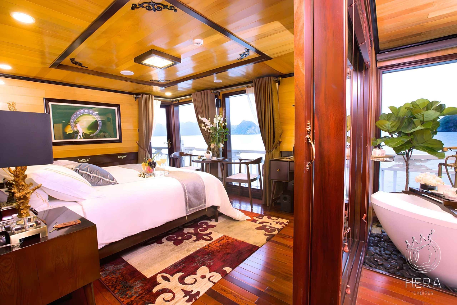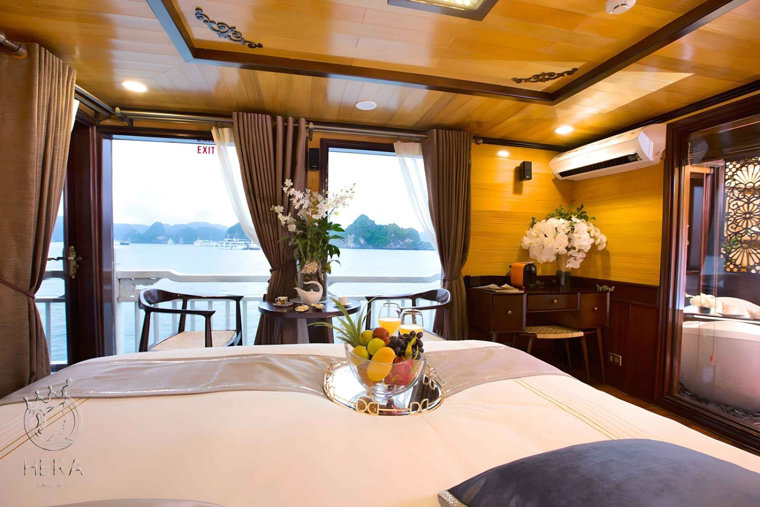 Oplev Ha Long-bugten med stil ombord på Hera Grand Luxury, der har 13 boutique-kahytter designet med fokus på komfort, privatliv og en betagende panoramaudsigt.