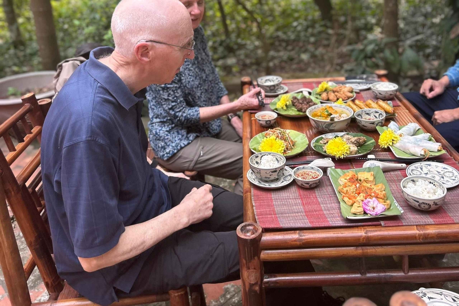 Kulturel forbindelse: Efter frokosten kan du møde Mr. Duoc, en veteran fra Vietnamkrigen og te-connaisseur. Dyk ned i hans livshistorier og lær kunsten at plukke og producere te i hans frodige plantage.