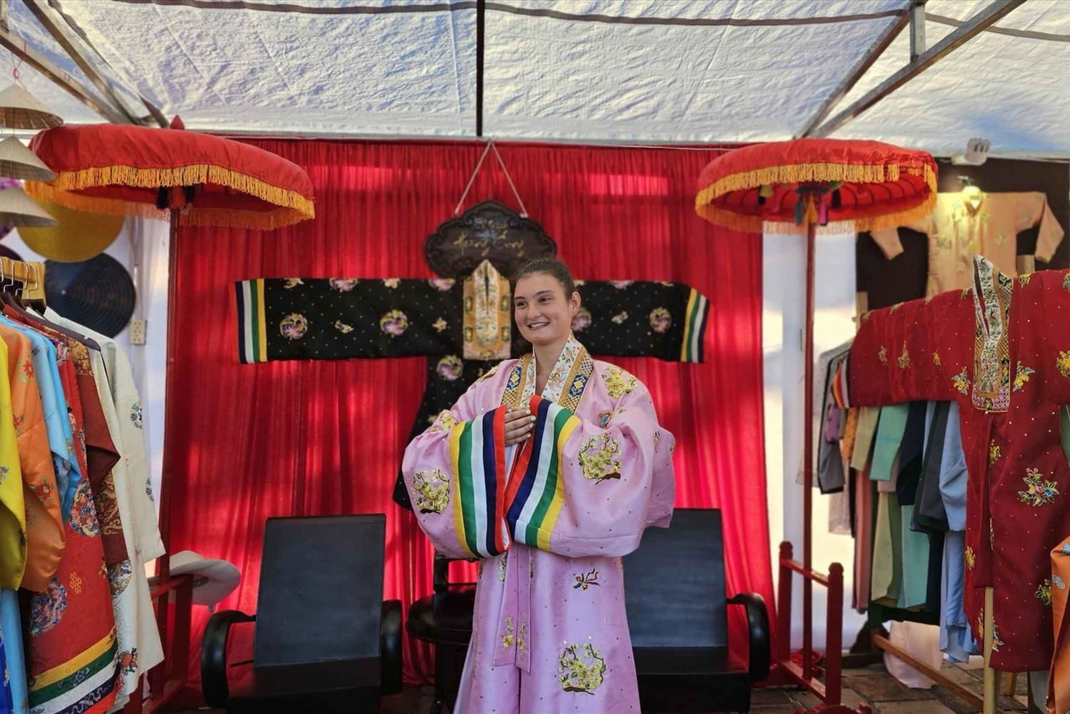 Se, hvordan håndværkeren omhyggeligt syr hvert lag stof og skaber kjoler, der både er smukke og symbolske. Hør om den dybe symbolik i den lange kjole, hvor de fire paneler repræsenterer far, mor, svigerfar og svigermor, og det inderste panel repræsenterer bæreren.