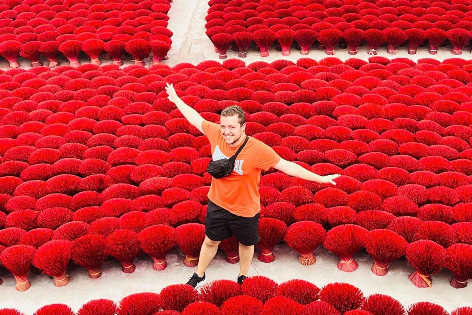 Oplev vietnamesisk håndværk på en medrivende, guidet rundvisning fra Hanoi, hvor du møder en lokal håndværker, oplever en historisk landsby, der laver røgelse, og lærer om, hvordan man laver koniske hatte. Få et unikt indblik i den lokale kultur med denne opdagelse af detaljeret håndværk.
