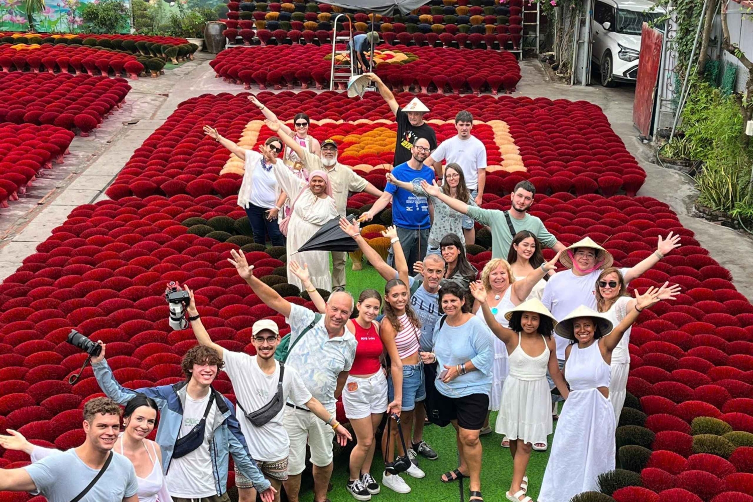 Oplev vietnamesisk håndværk på en medrivende, guidet rundvisning fra Hanoi, hvor du møder en lokal håndværker, oplever en historisk landsby, der fremstiller røgelse, og lærer om fremstillingen af koniske hatte. Få et unikt indblik i den lokale kultur med denne opdagelse af detaljeret håndværk.
