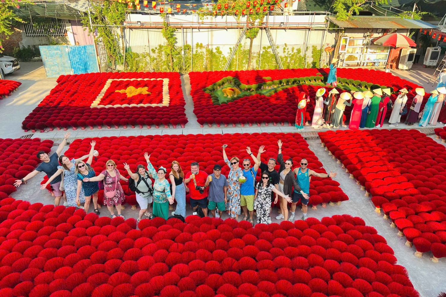Tag til landsbyen Quang Phu Cau, som har produceret røgelse i mere end 100 år. Gå en tur til landsbyens centrum, og se, hvordan de lokale laver røgelse i familiens håndværksproduktion. Mød en familie, der har specialiseret sig i at farve røgelsepinde, og nyd de farverige bundter af røgelse.
