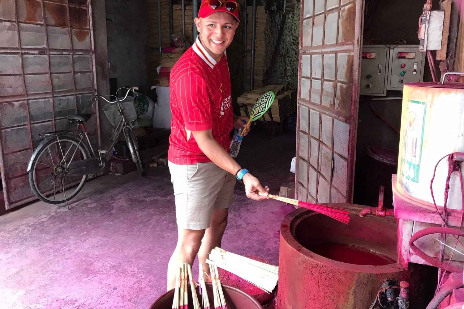 Når du har udforsket katedralen, kan du tage til Quang Phu Cau røgelsebyen, et sted gennemsyret af tradition og håndværk. Se de pulserende rækker af farvestrålende røgelsepinde, der er arrangeret som blomstrende blomster og skaber et surrealistisk, farverigt landskab. Se håndværkere håndfarve bambuspinde og tørre røgelse under solen, hvilket giver et sjældent indblik i et århundreder gammelt håndværk med rødder i Vietnam.