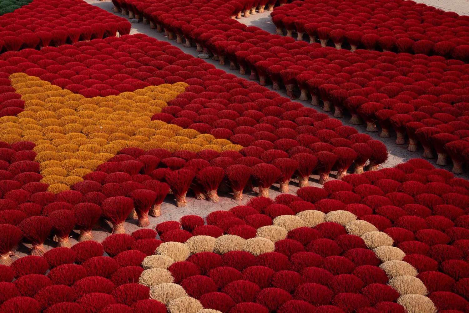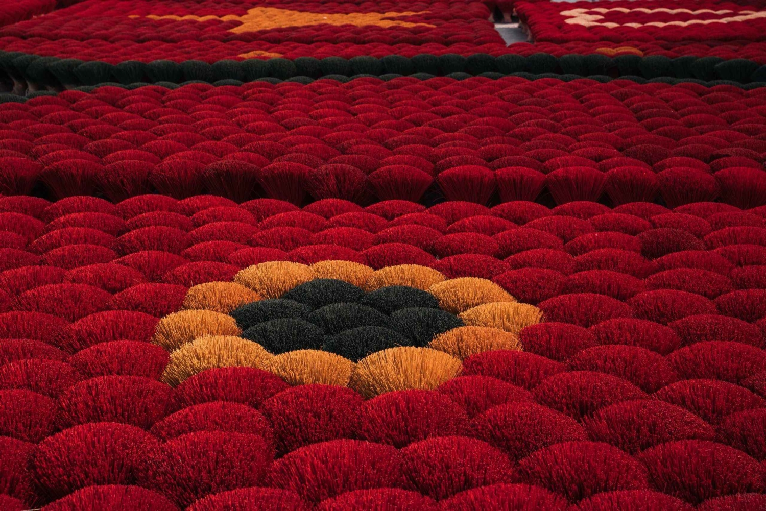 Tag til landsbyen Quang Phu Cau, som har produceret røgelse i mere end 100 år. Gå en tur til landsbyens centrum, og se, hvordan de lokale laver røgelse på håndværksmæssig, familiemæssig skala. Mød en familie, der er specialister i at farve røgelsepinde.