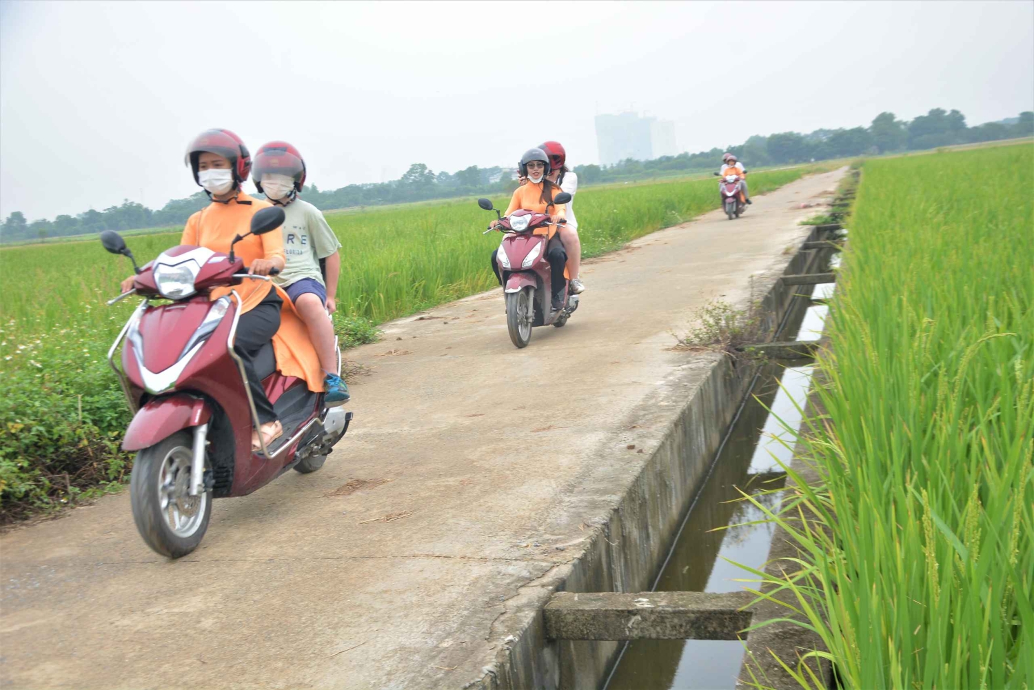 Den første del af vores Hanoi Vespa Tour til Bat Trang Ceramic Village Led By Women tager os væk fra den travle by til Den Røde Flods fredelige bredder. Mærk den kølige brise, og nyd den fantastiske udsigt over landskabet, mens byens støj gradvist forsvinder i baggrunden.