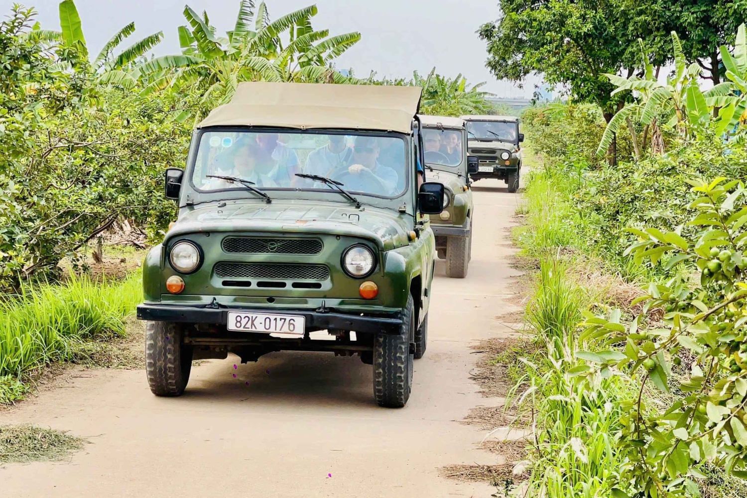 Start din jeeptur i Hanoi til Bat Trang-keramiklandsbyen, der ledes af kvinder, når din guide og chauffør henter dig på dit hotel i Hanoi. Efter en hurtig sikkerhedsbriefing og et overblik over dagens rejseplan, tager du af sted fra Hanois pulserende gader og kører mod Den Røde Flods rolige bredder. Mens du kører langs fredelige veje ved floden, forsvinder byens travlhed i det fjerne og erstattes af frisk luft og naturskønne landskaber.