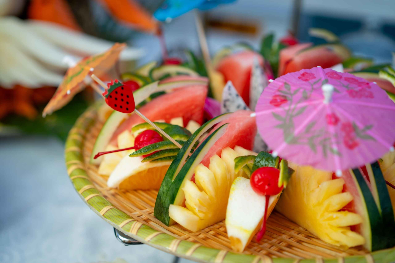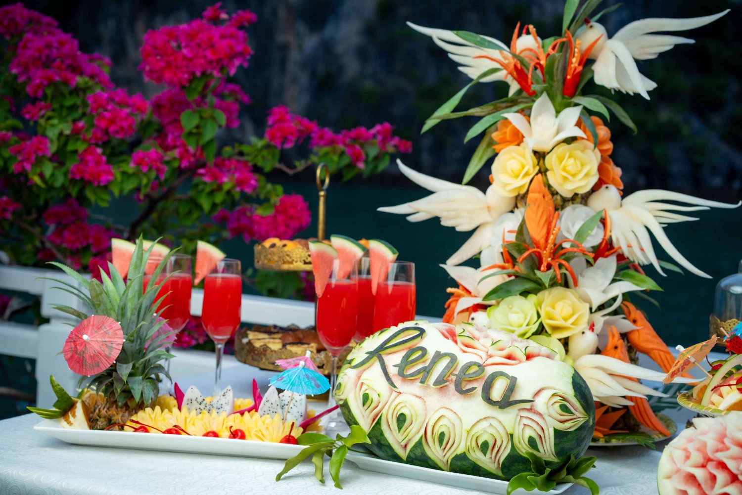 18.00 Uhr: Sonnenuntergangsparty mit Musik und Happy Hour. Der Koch kommt zur Party und zeigt, wie man Gemüse in Blumen verwandelt.