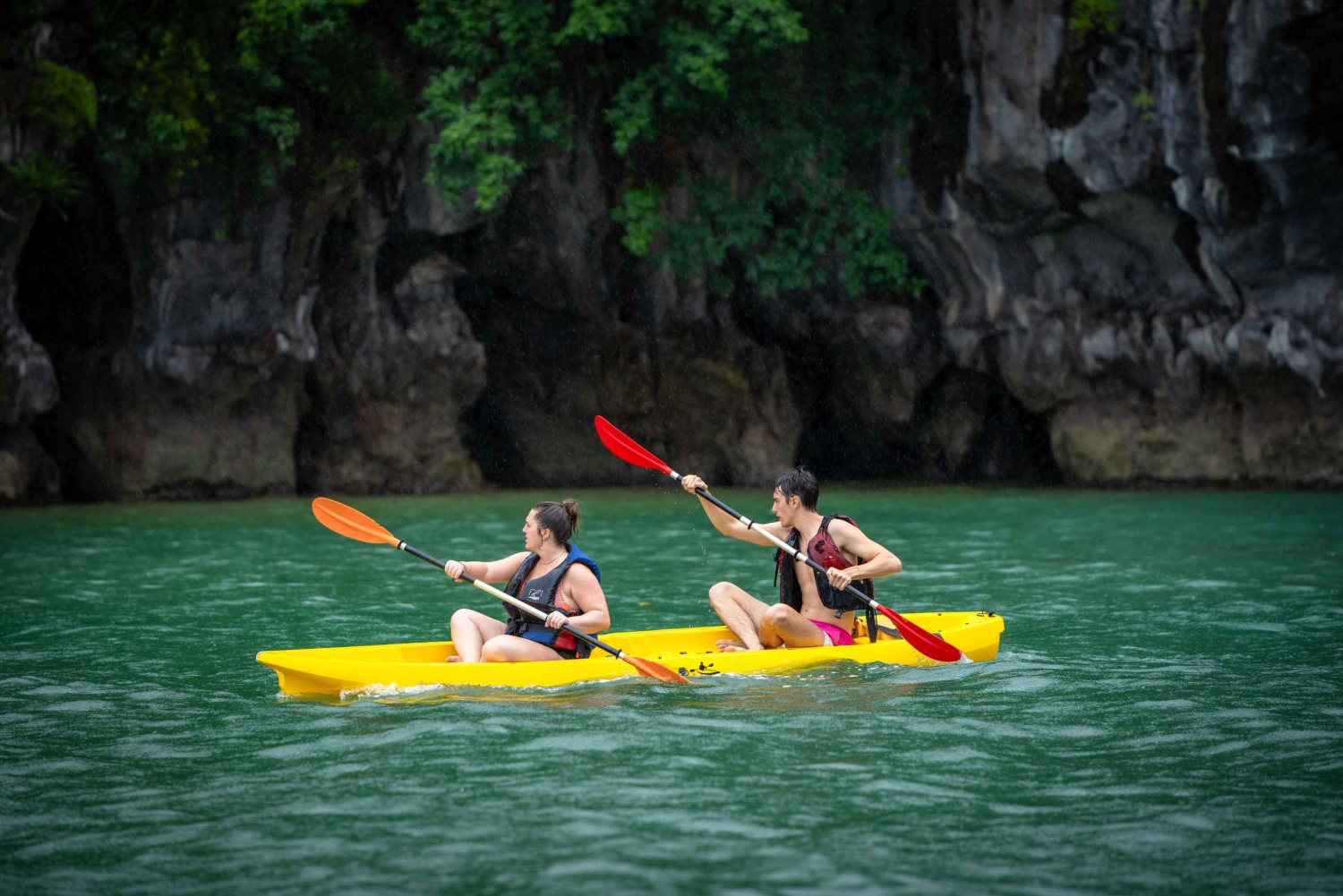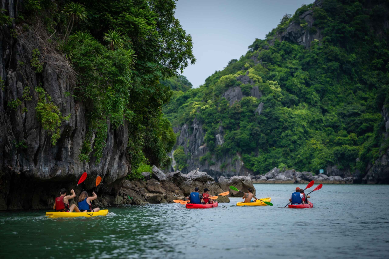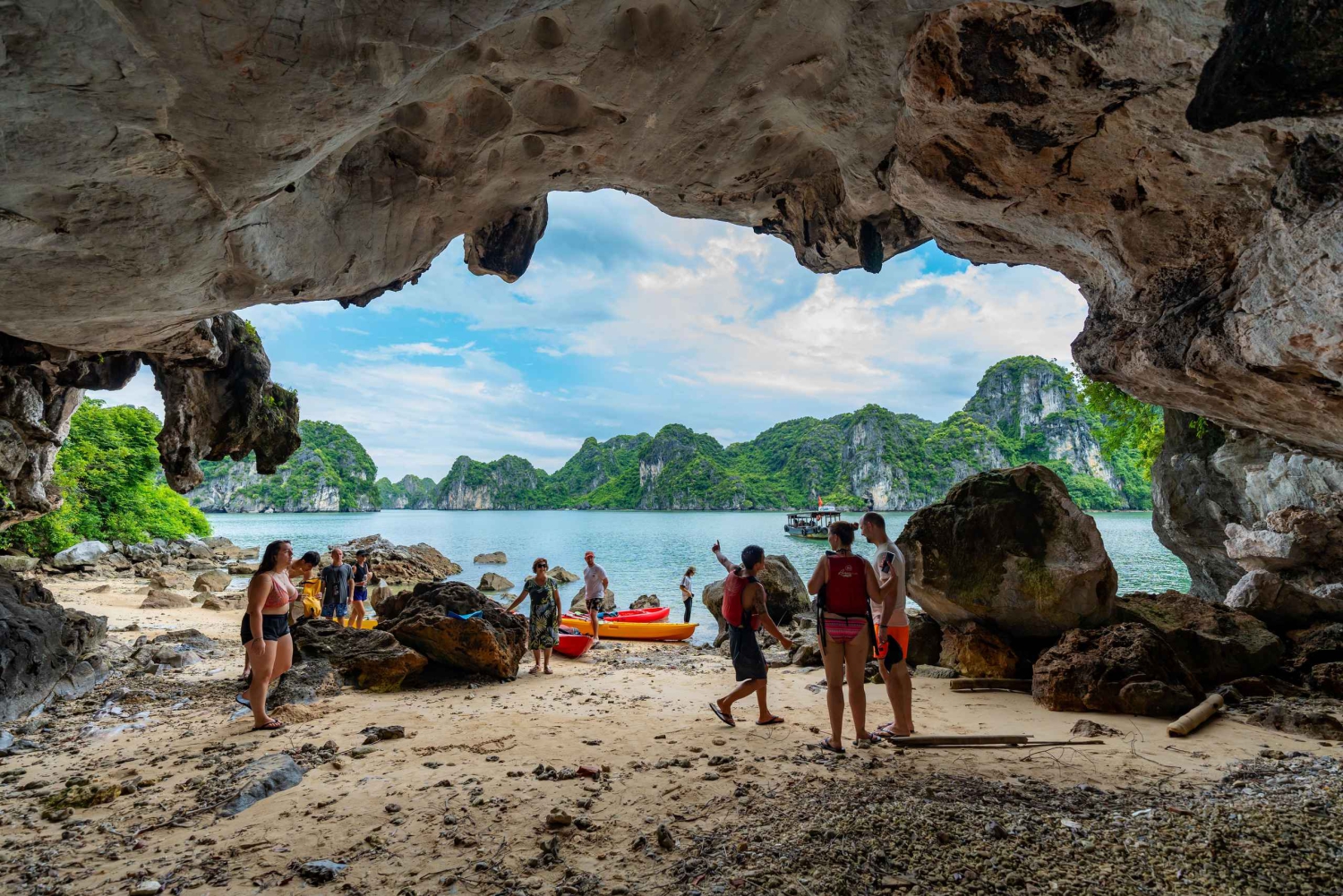 15.00 Uhr: Ankunft im Kajakgebiet – Cap La Island. Genieße Kanufahren zwischen Karstfelsen und atemberaubender Natur sowie Schwimmen und Entspannen an einem natürlichen Strand. Du kannst die Gegend auch mit dem Beiboot erkunden. Handtücher und wasserdichte Taschen werden bereitgestellt. Die Kreuzfahrt hält im Ankergebiet.