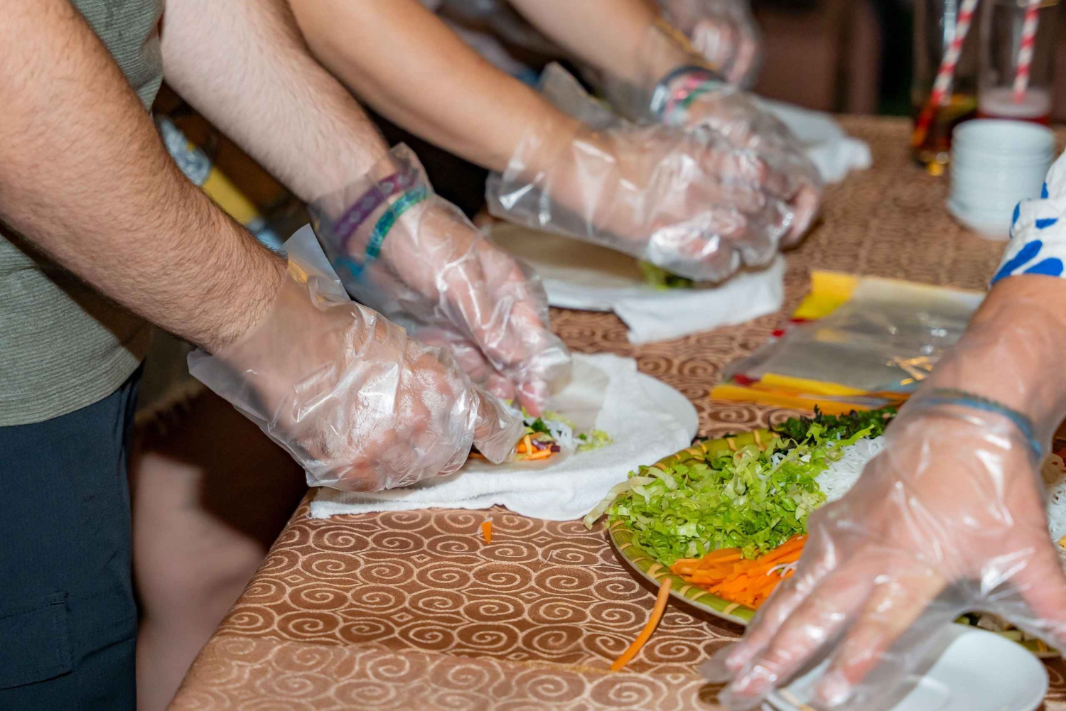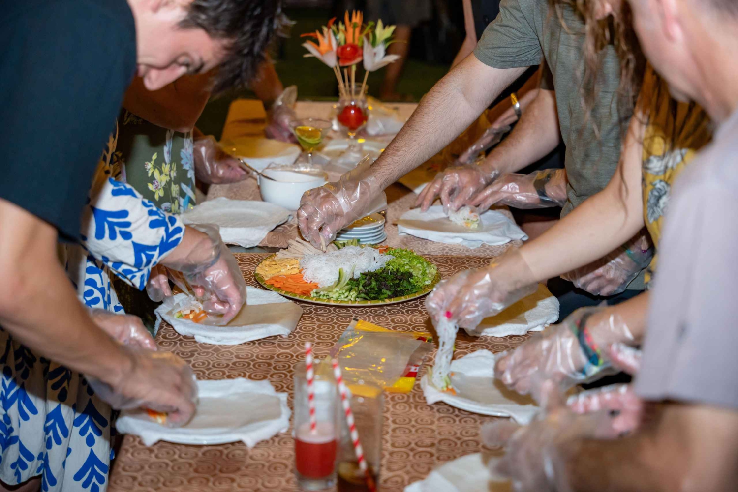 9.45: Zubereitung eines einfachen vietnamesischen Gerichts – frische Frühlingsrollen – mit ausführlicher Erklärung durch den Guide.