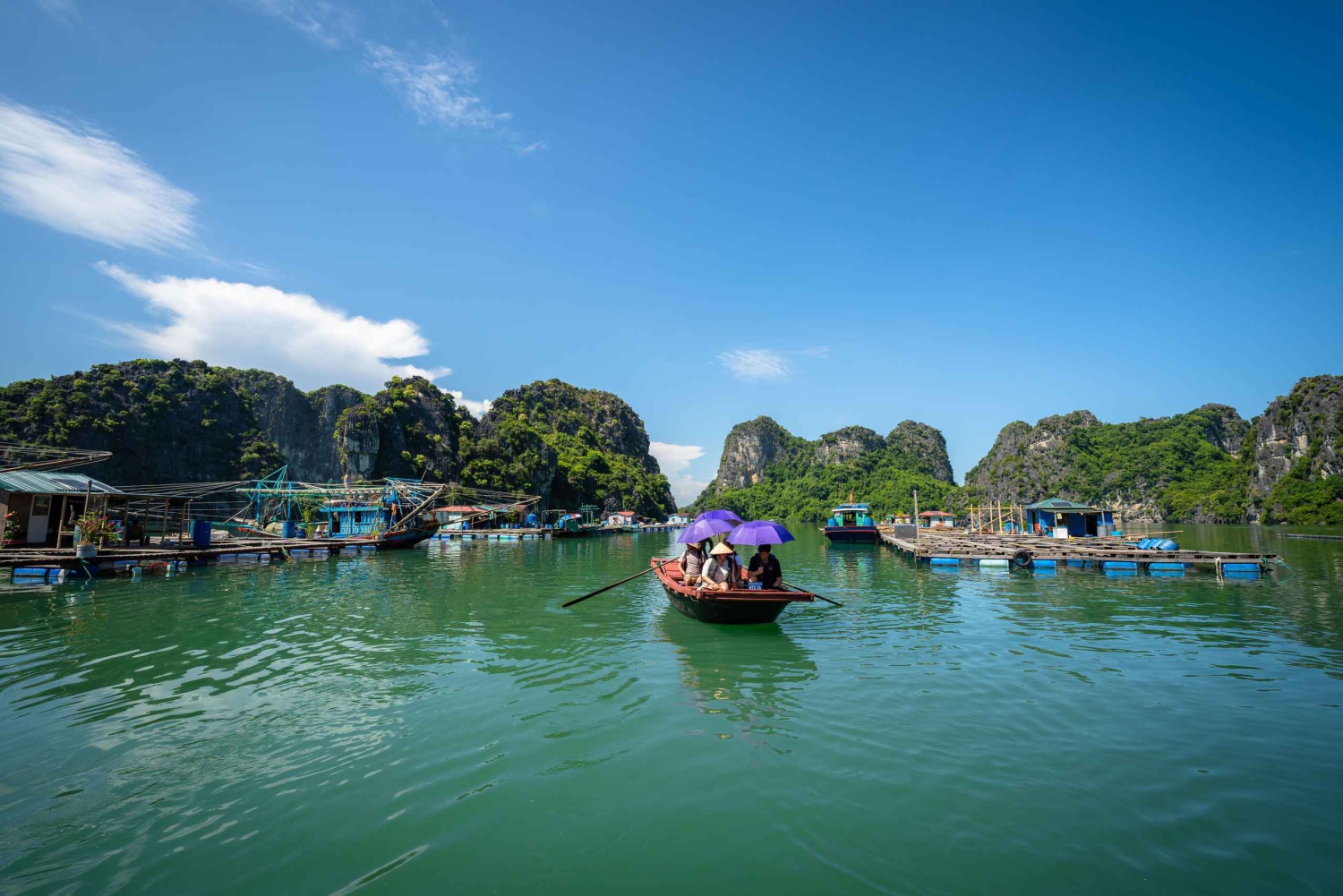 Entdecke die Schönheit der Bai Tu Long-Bucht auf einer zweitägigen Kreuzfahrt ab Hanoi. Lerne das lokale Fischerleben kennen und genieße ein BBQ-Abendessen auf dem Sonnendeck.