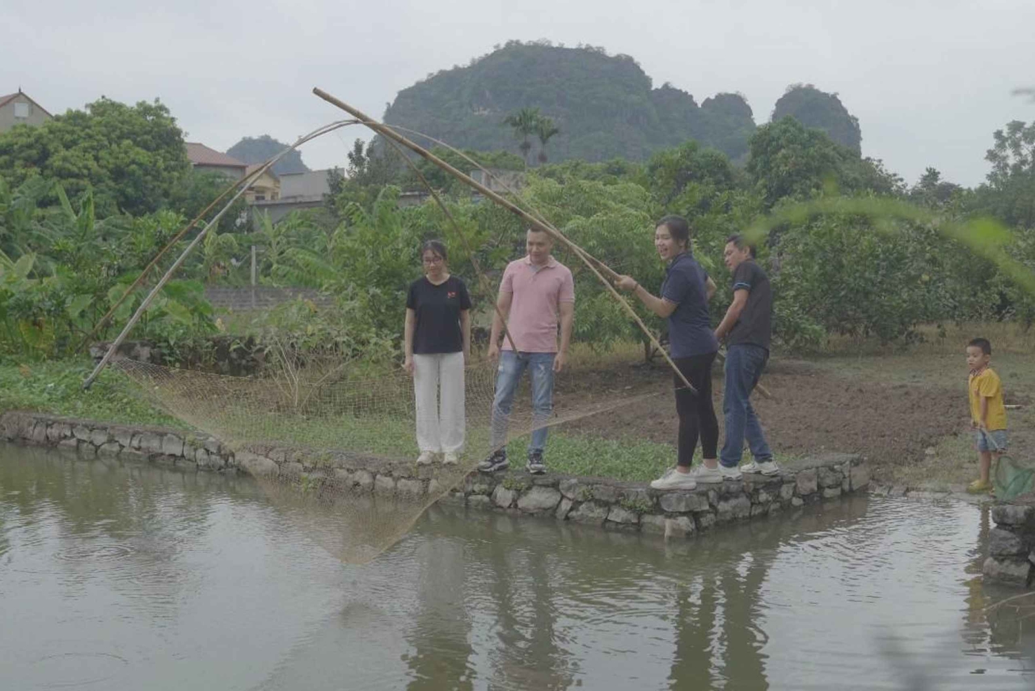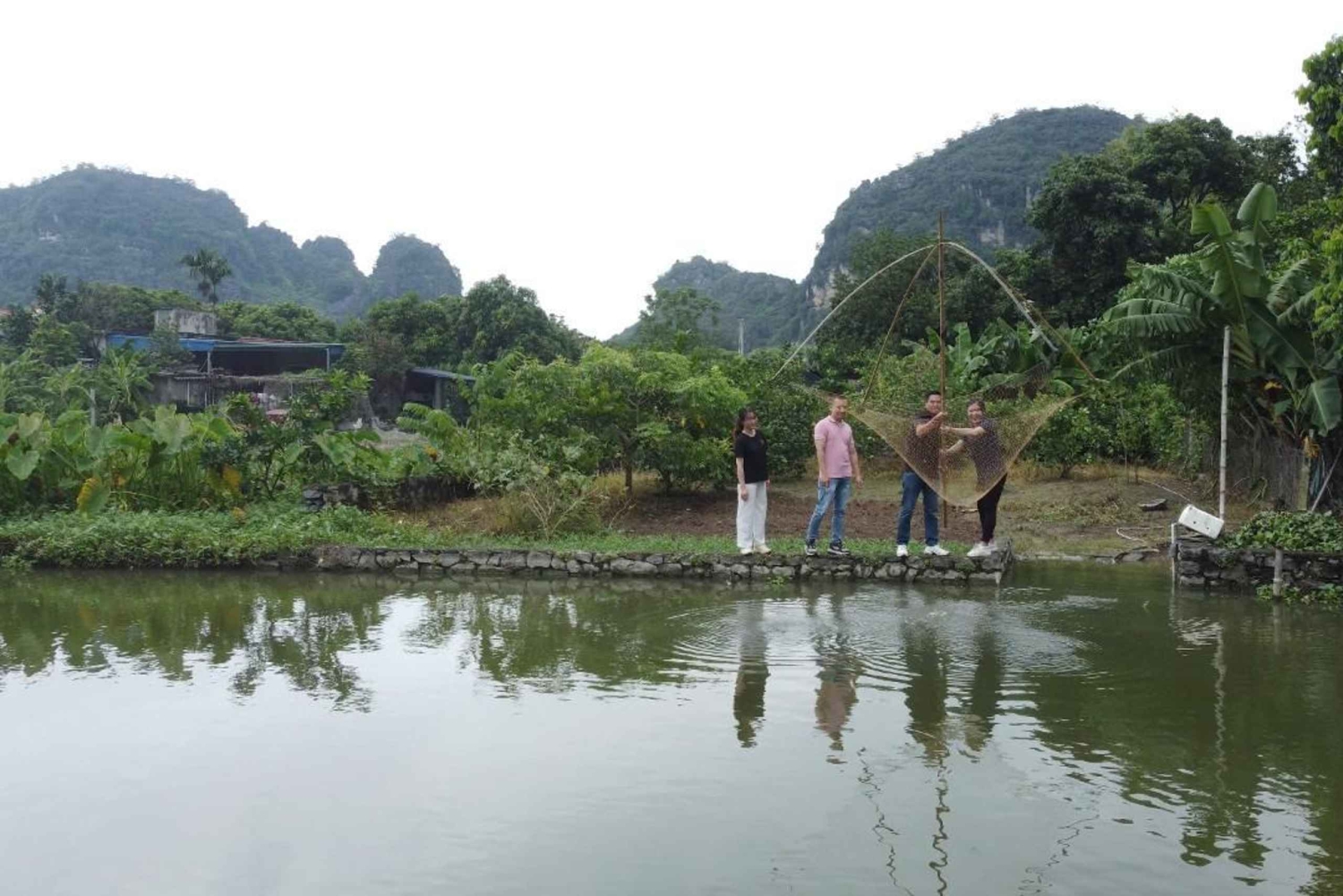 Nach der Ankunft in der Mua-Höhle kletterst du auf den Gipfel des Berges und bekommst einen Überblick über die Stadt Ninh Binh und das Dorf Tam Coc. 11.30 Uhr: Ankunft in Tam Coc, Besuch eines Bauernhauses, wo du mit traditionellem Tee und Süßigkeiten herzlich empfangen wirst. Erfahre mehr über das typische Leben eines Bauern in Vietnam und über das Hauptgeschäft Garten-Teich-Käfig. Außerdem wirst du die Kultur der vietnamesischen Familien besser verstehen.