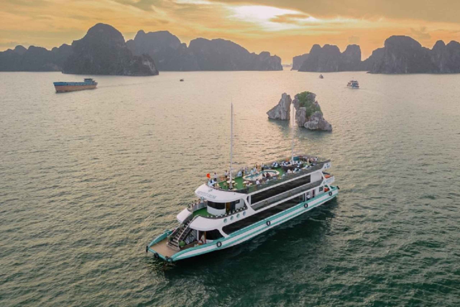 Yendo más allá del itinerario ordinario, te llevaremos pasando por la parte más famosa de la bahÃa de Halong con una oportunidad única de explorar algunos de los lugares más impresionantes como la cueva de Luon, la isla de Titop