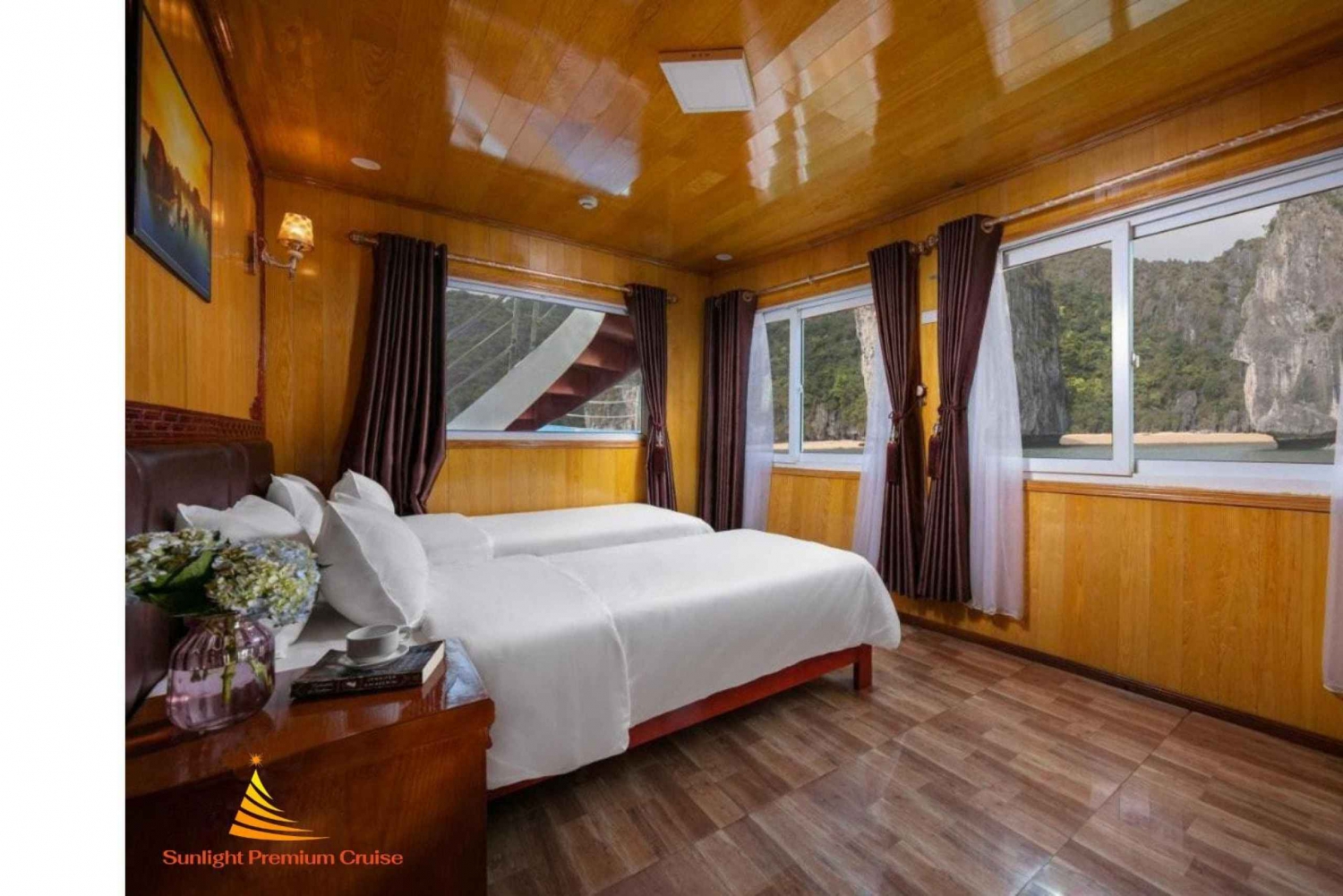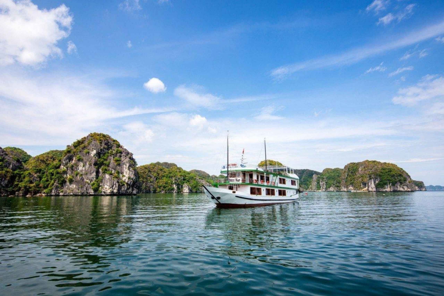 Navega por las bahías de Lan Ha y Ha Long en un crucero guiado de dos días. Disfruta de kayak, cocina, natación, karaoke y otras emocionantes actividades durante el día, y relájate a todo lujo por la noche.