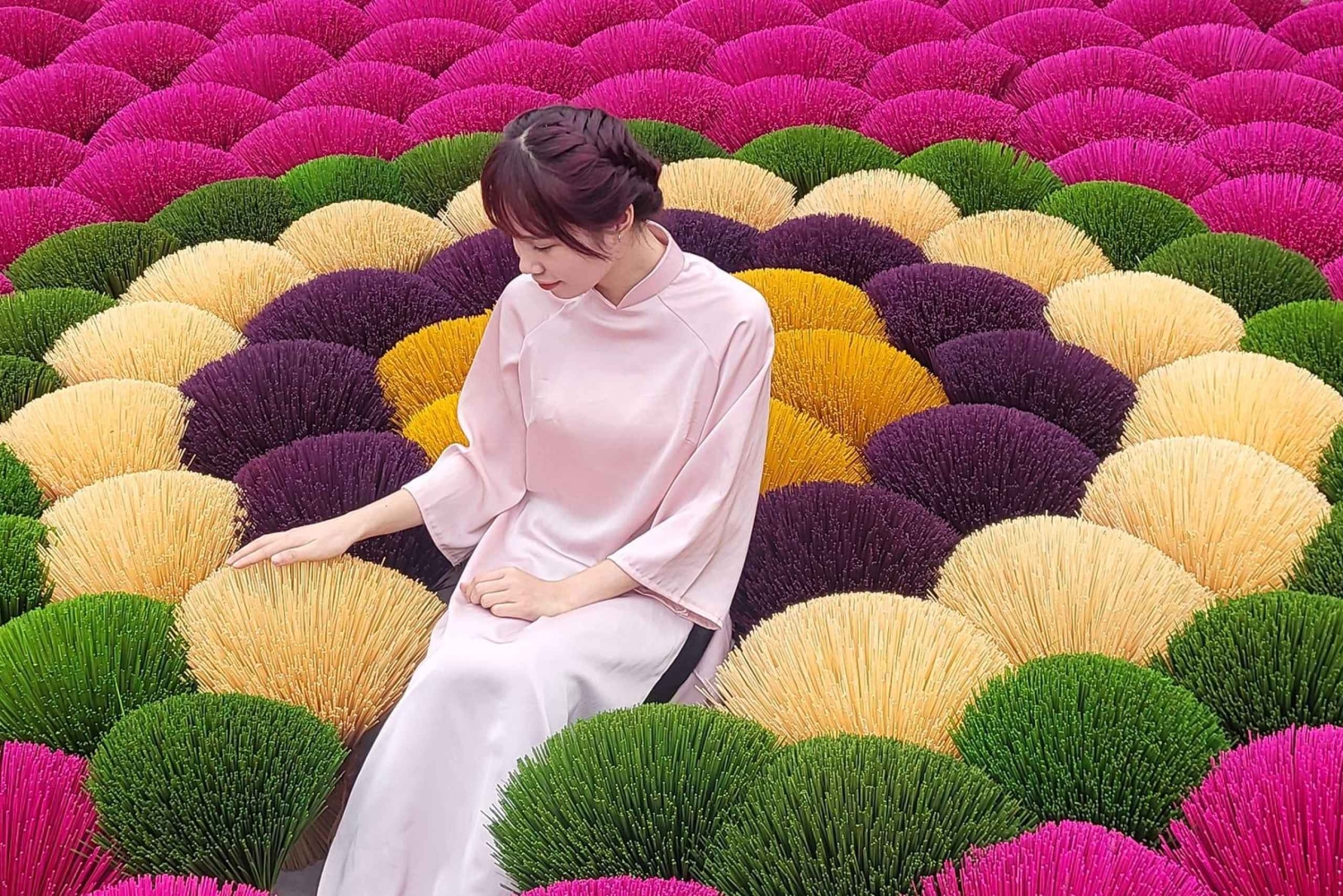 Salida hacia el pueblo de Quang Phu Cau, que lleva más de 100 años produciendo incienso. Da un paseo hasta el centro del pueblo y mira cómo los lugareños hacen incienso de forma artesanal y familiar. Conoce a una familia especializada en teñir varitas de incienso.