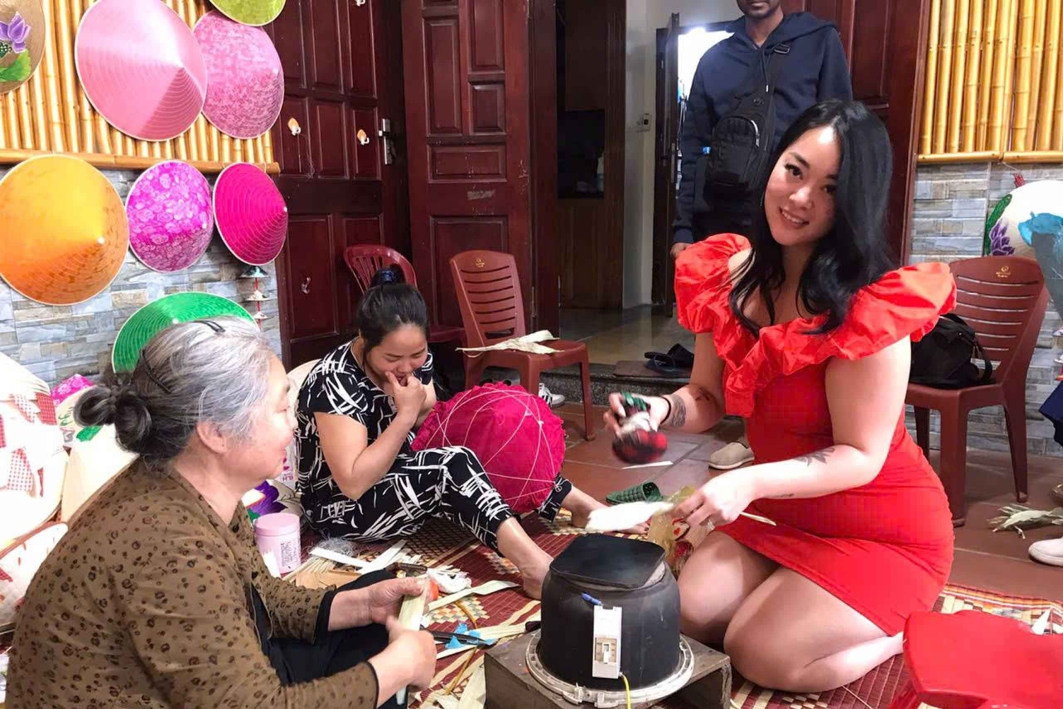 Opción de excursión de medio día en grupo: visita a 2 pueblos (sombreros cónicos y artesanía de incienso) + calle del tren (opcional)