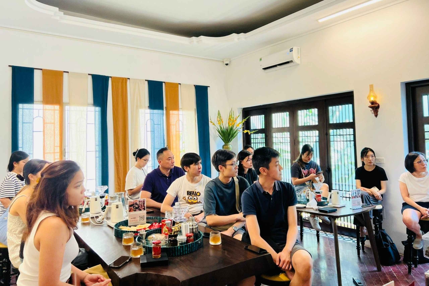 Tu experiencia comienza con una cálida bienvenida en una tranquila villa de estilo indochino, donde te presentaremos el viaje cultural que conecta las tradiciones del té vietnamita y el banh troi (pastel flotante).
