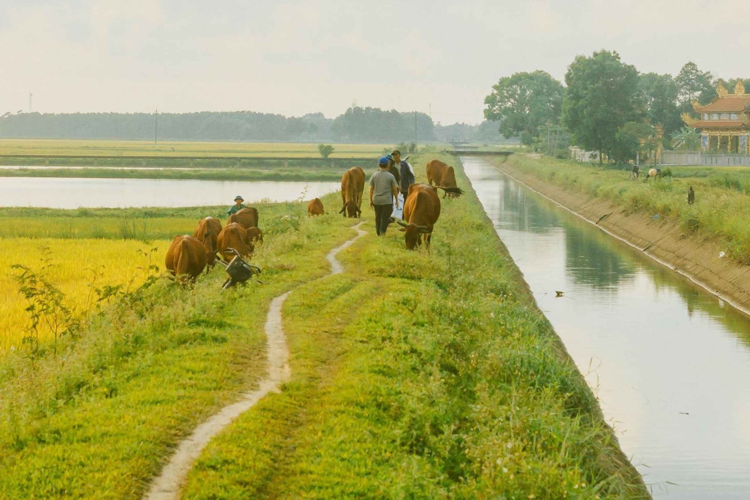 A continuación, explora el antiguo pueblo de Cu Da, situado a unos 15 km al sur de Hanói, a orillas del río Nhue. Conocido por sus casas antiguas, templos ancestrales y artesanía tradicional, este pueblo ofrece una visión del rico patrimonio cultural de Vietnam.
