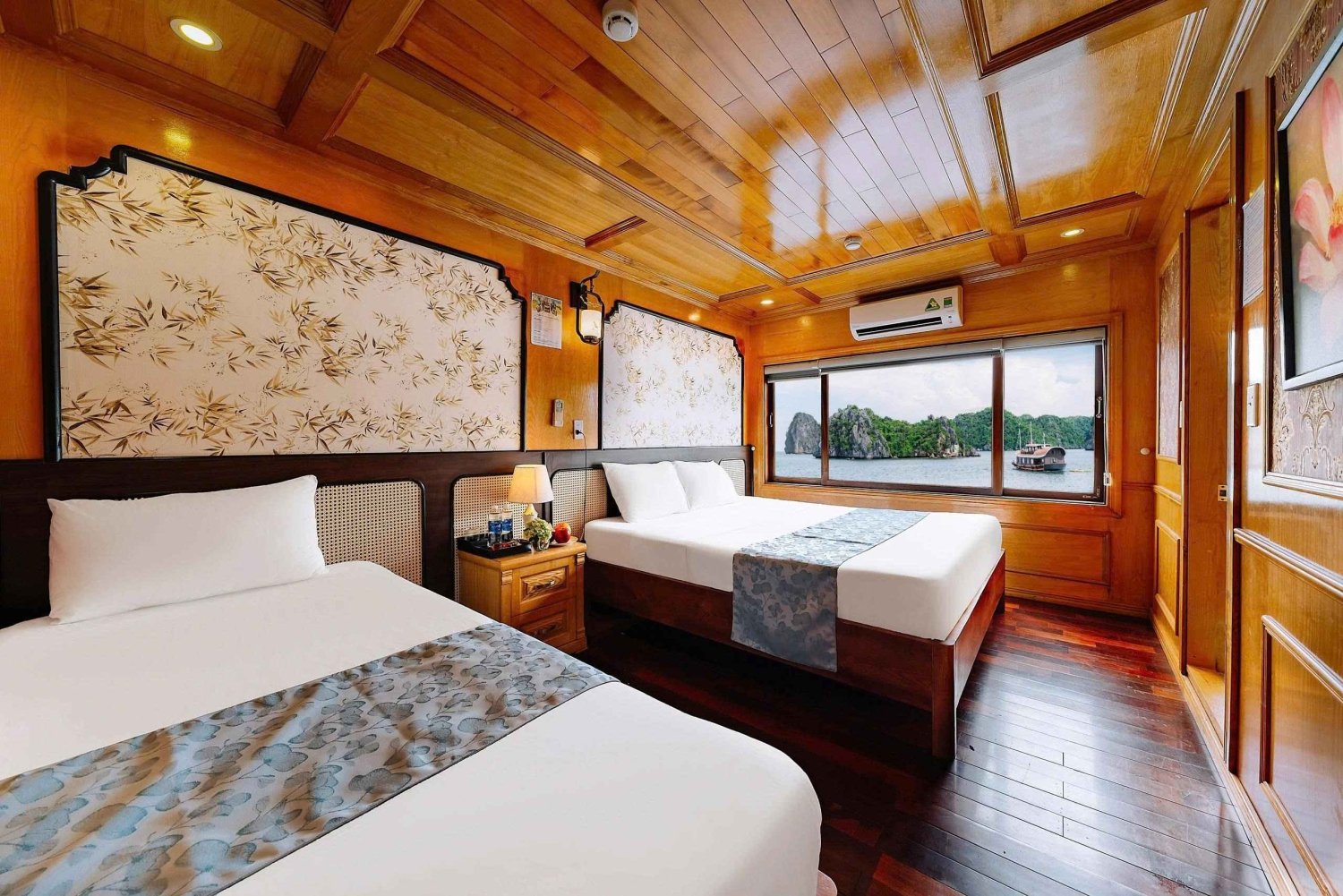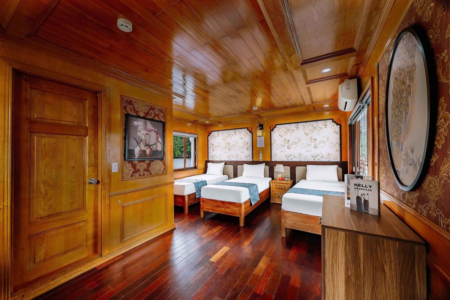 • 12.00–12.30: Jos olet varannut kuljetuksen takaisin Hanoihin, kuljetus noutaa sinut laiturilta ja vie sinut hotellillesi Hanoissa noin klo 15.45–16.00