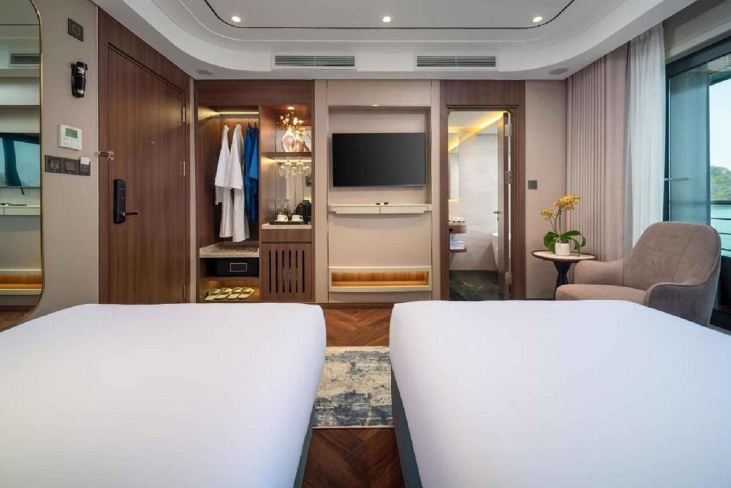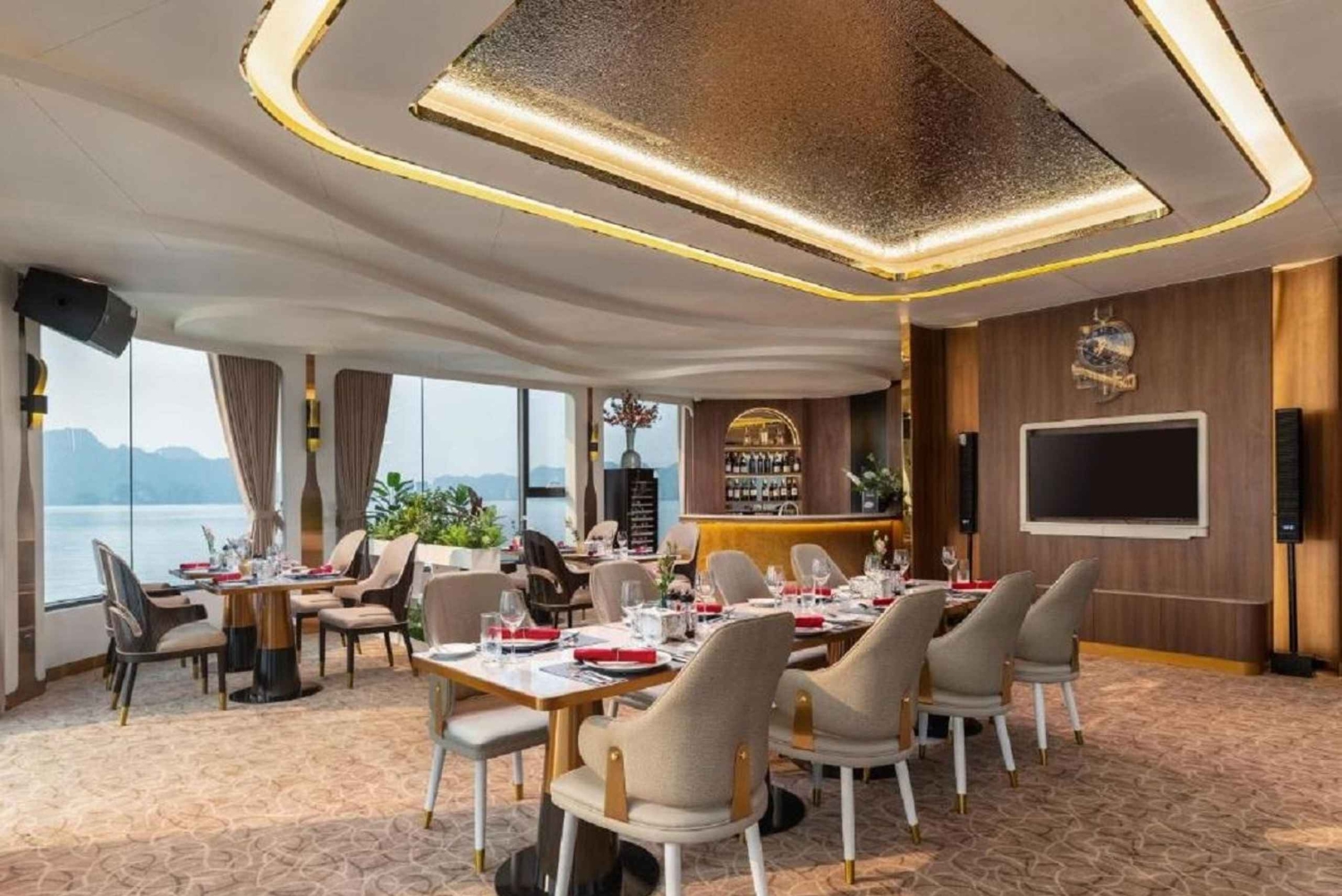 Klo 11.30: Saapuminen Halongin lähtöselvitysaulaan. Kun sinut on viety Halong-risteilylle, sinut kirjataan sisään. Nauti tervetuliaisjuomista, kun risteilyn johtaja esittelee matkasuunnitelman ja turvallisuusohjeistuksen