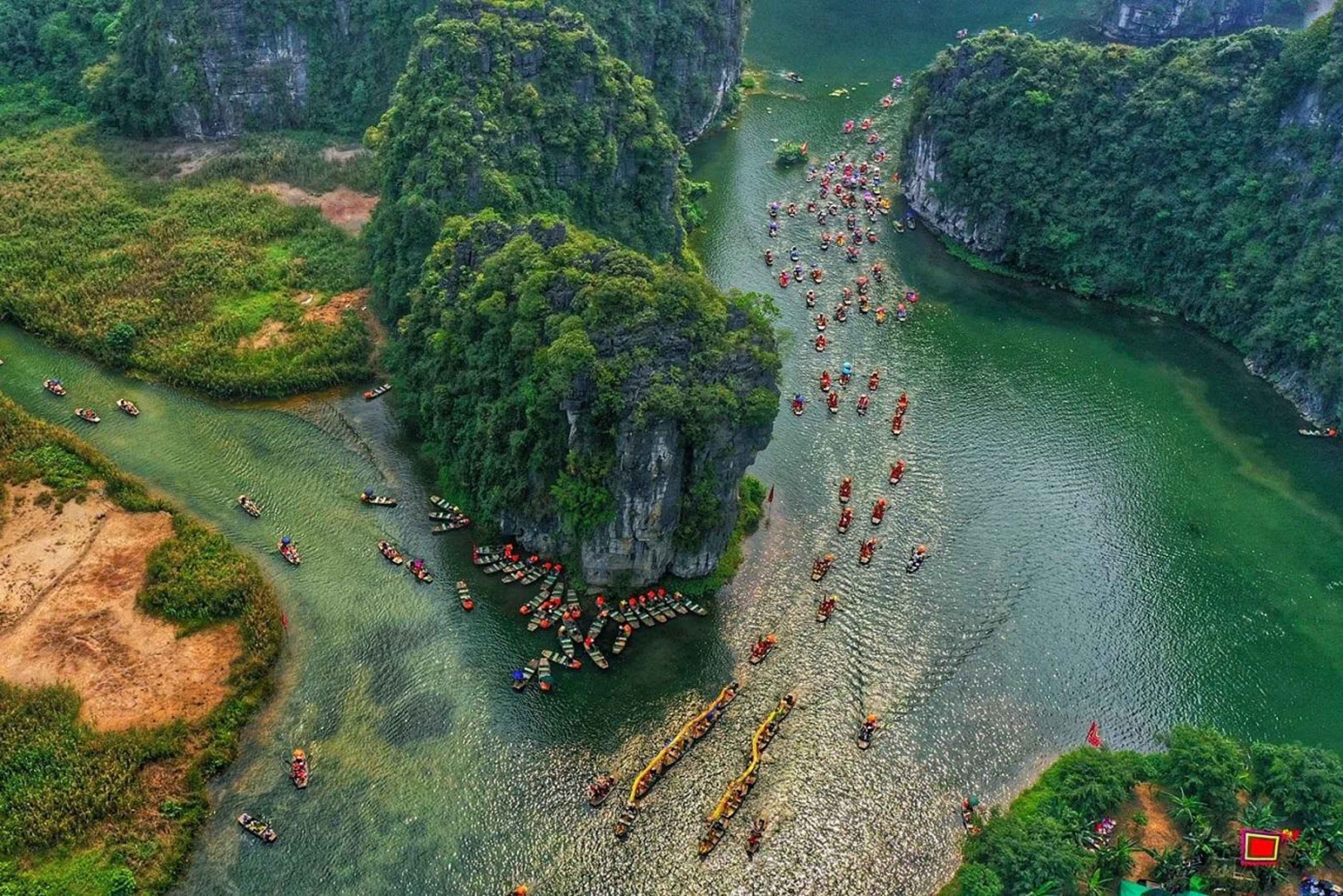 13.30: Vieraile Tam Cocissa paikallisten soutamalla sampan-veneellä noin 1,5 tunnin ajan. Tämä venematka on kuin Ha Long Bay maalla. Se on mukava matka joen varrella, ja näet rauhalliset kalkkikivivuoret ja riisipeltoja, jos matkustat sadonkorjuun aikaan.