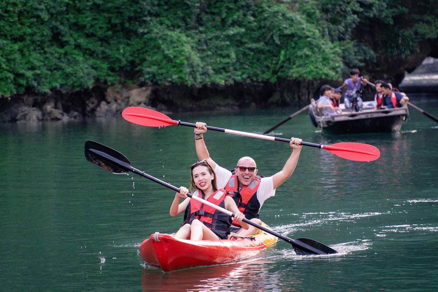 14.30: Tutustu Lan Ha Bayn koskemattomaan laguunialueeseen kajakilla. Melo läpi tummien ja kirkkaiden luolien, luonnontunnelien ja majesteettisten kaarien. Tämä alue on sekä upea että ekologisesti suojeltu. Jos olet onnekas, saatat jopa nähdä harvinaisen Cat Ba Langurin