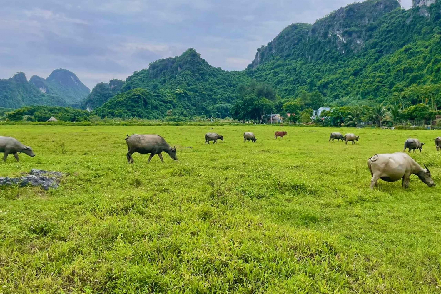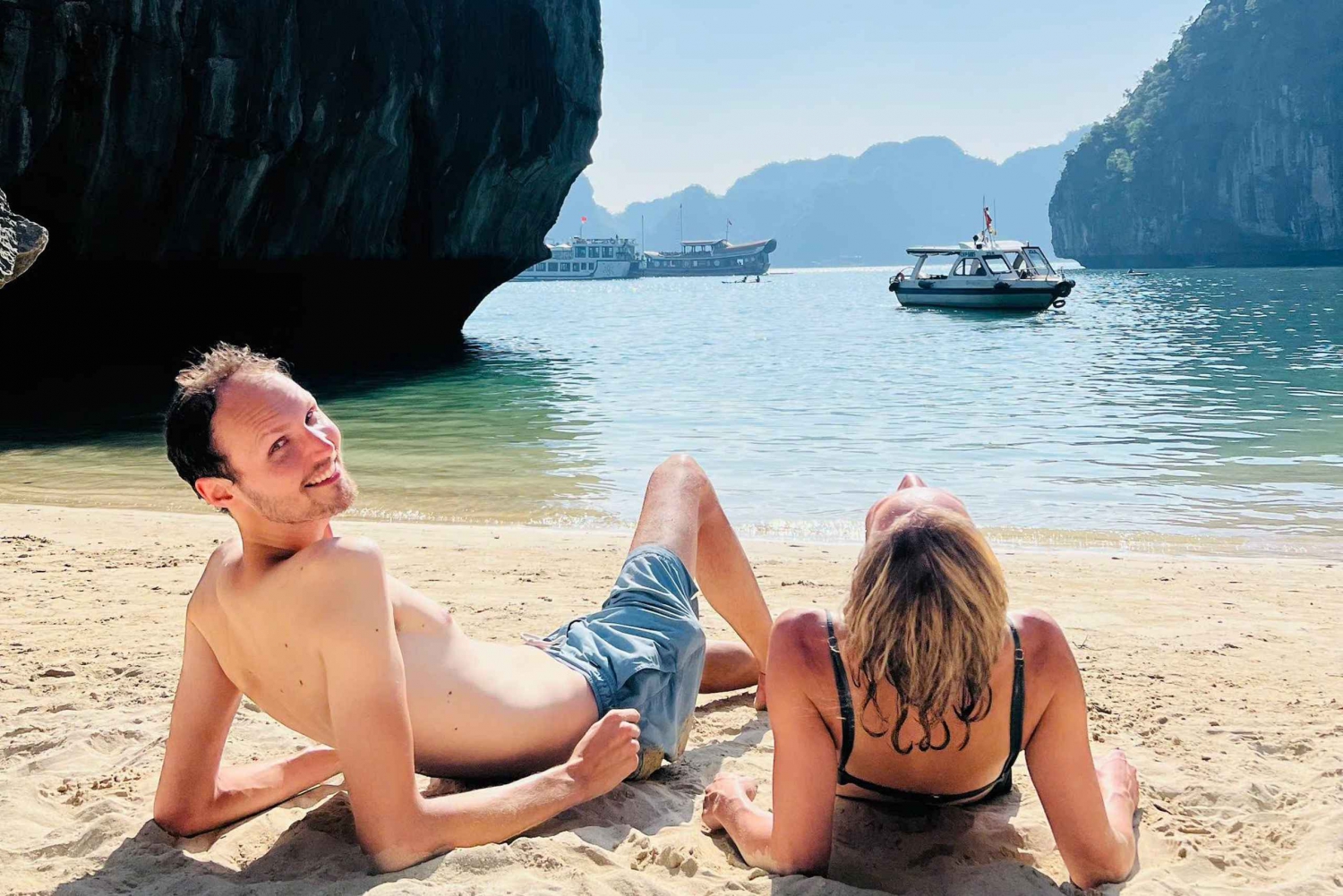 16.30: Pysähdys Ba Trai Daon rannalla uimiseen ja veneestä hyppäämiseen. Tämä ranta on syrjäinen, hiljainen ja vähemmän turistinen – ihanteellinen paikka tutustua temppelirantoihin, piilossa oleviin laguuneihin ja luonnonkauniisiin kalliokaariin.