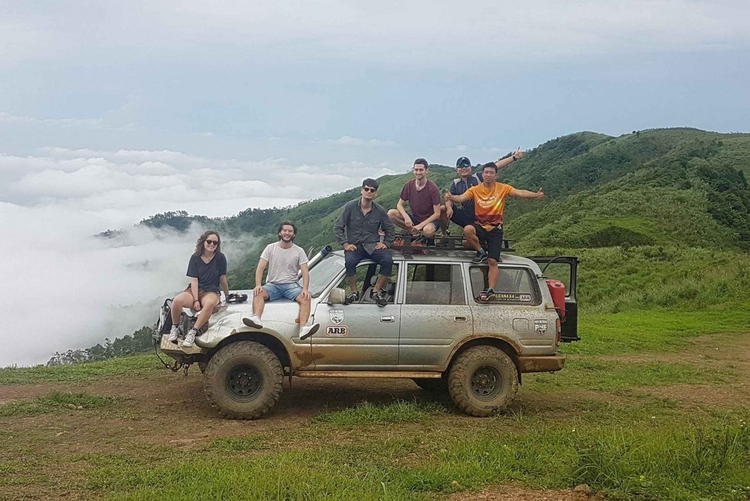 Sen jälkeen siirrymme autolla lentopaikalle. Matka kestää yleensä 4-6 tuntia lentopaikasta riippuen. Saavuttuamme lentopaikalle levähdämme hetken laskeutumisalueella ennen kuin jatkamme matkaa vuoristomaasturilla 15-20 minuuttia.