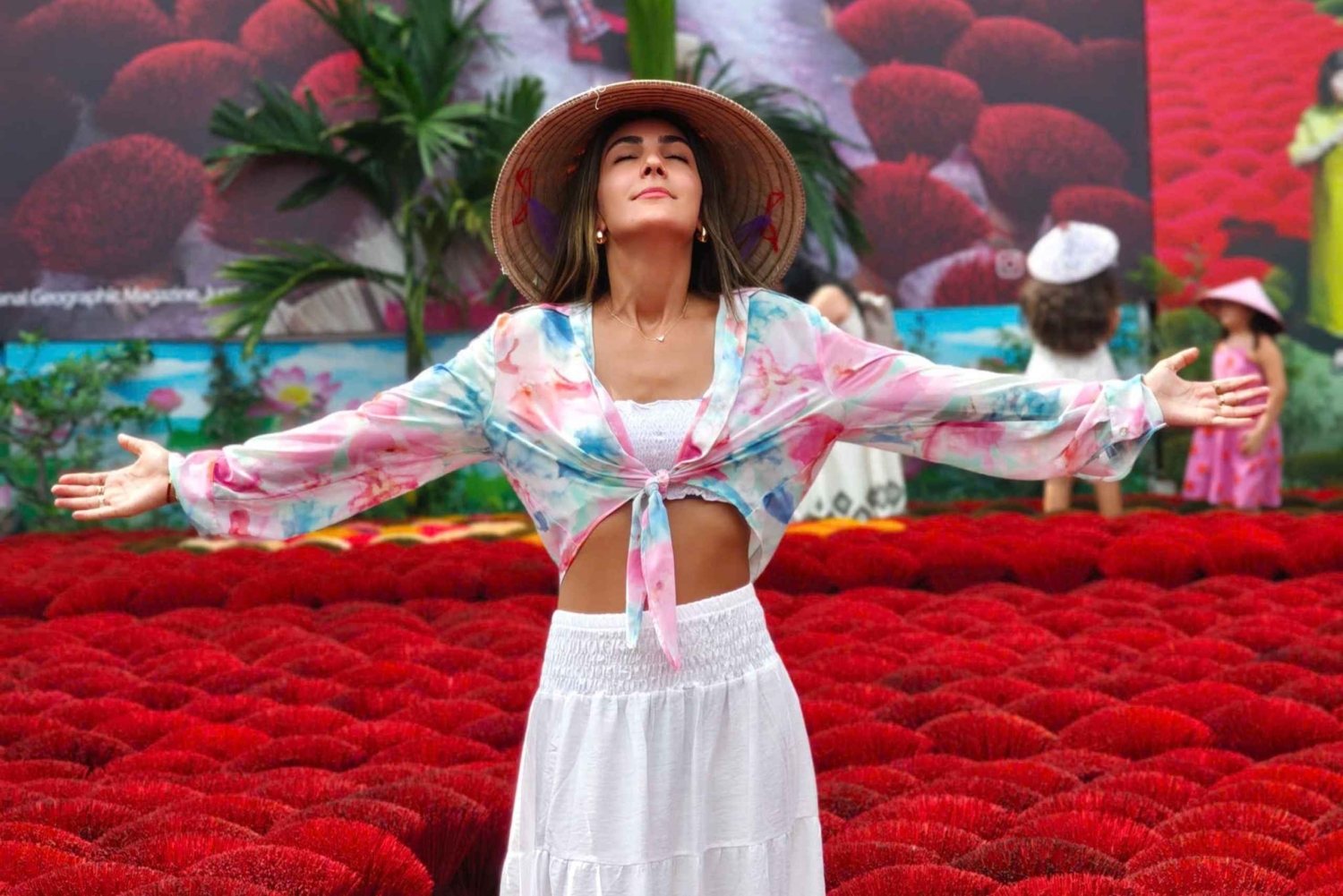 Lähde Quang Phu Cau -kylään, joka on valmistanut suitsukkeita yli 100 vuoden ajan. Kävele kylän keskustaan ja katso, miten paikalliset valmistavat suitsukkeita käsityönä perheissä. Tapaa perhe, joka on erikoistunut suitsukkeiden värjäämiseen, ja tutustu värikkäisiin suitsukkeisiin.