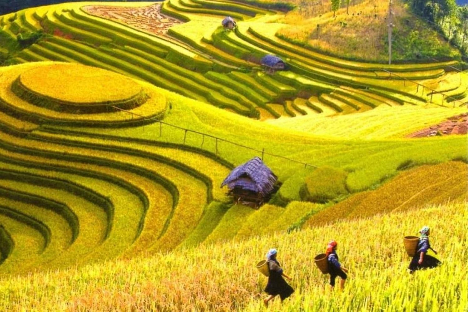 ✓ 8.45: Jatka kävelyä riisipeltoille, missä voit ottaa kuvia upeista maisemista, vaeltaa bambumetsässä ja pysähtyä katsomaan Giang Ta Chain kylän panoraamanäkymiä – kylä on punaisen Dzao-kansan koti.
