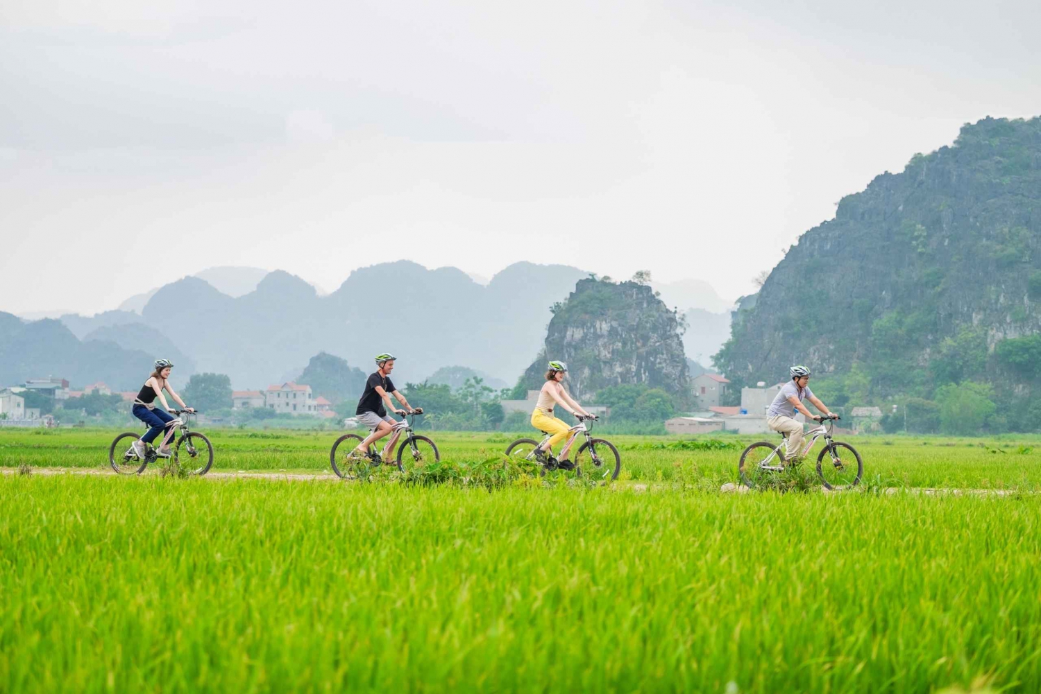 Tutustu Hoa Lun muinaiseen linnoitukseen, nauti kunnon lounas, nauti bambuveneen kierroksesta ihailemaan Tam Cocin karstikivimuodostelmia. Tutustu rauhallisiin näkymiin kylien ympärillä pyöräilyretkellä.