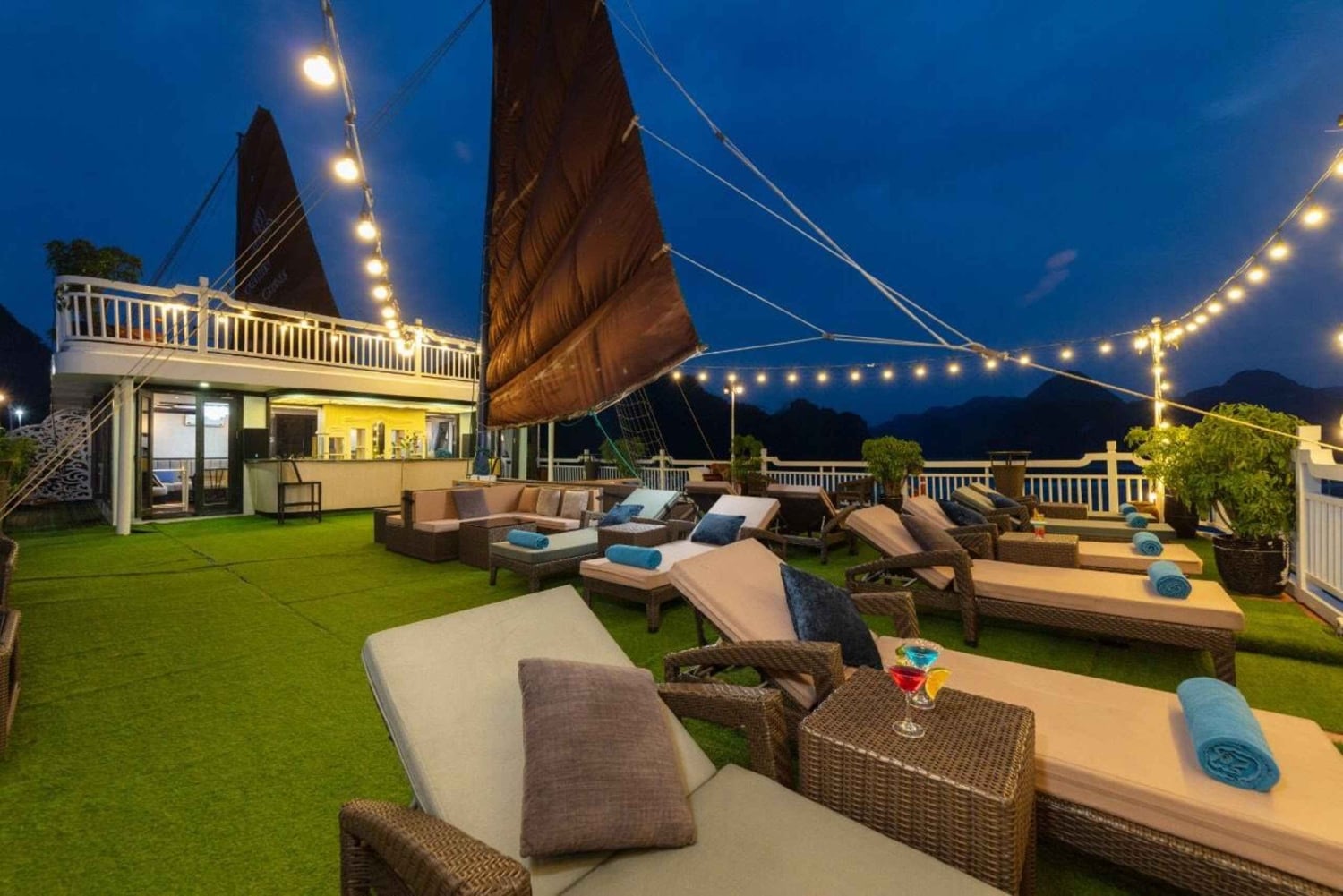 Profitez des activités de nuit à bord, comme la pêche au calmar, les fabuleuses boissons dans nos bars, les films et le karaoké, la thérapie au spa, ou détendez-vous simplement dans votre chambre. Nuit en croisière 5 étoiles