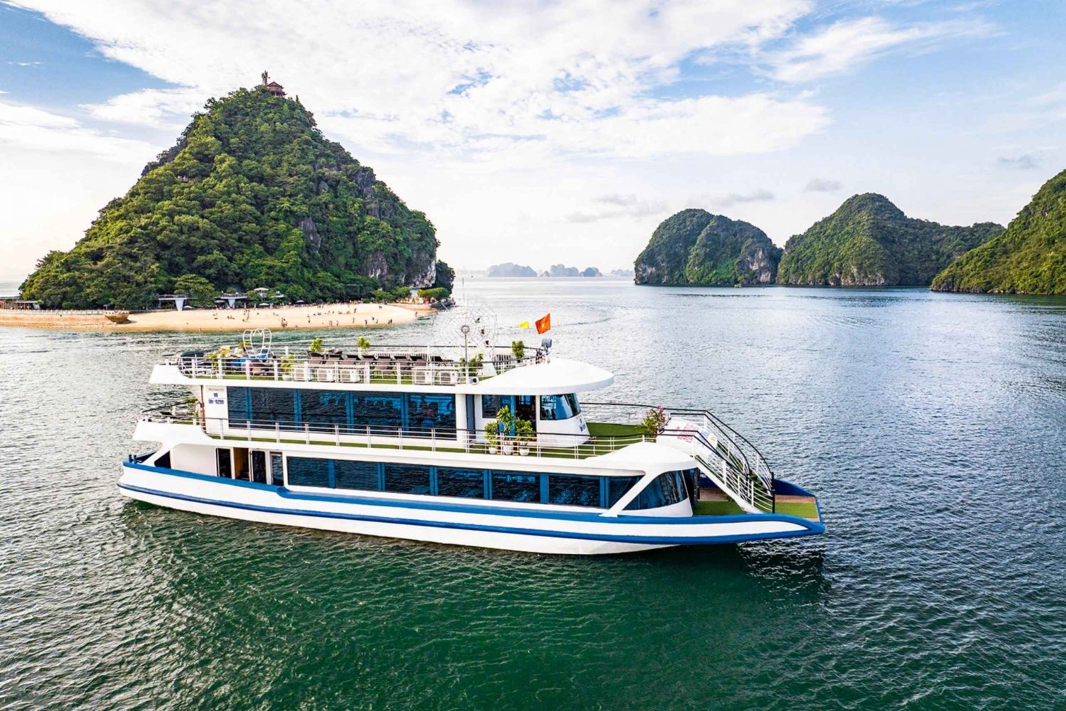 Visitez l'île de Titop : Grimpez au sommet de l'île de Titop pour profiter de la vue panoramique sur la baie d'Halong ou nagez sur la belle plage.