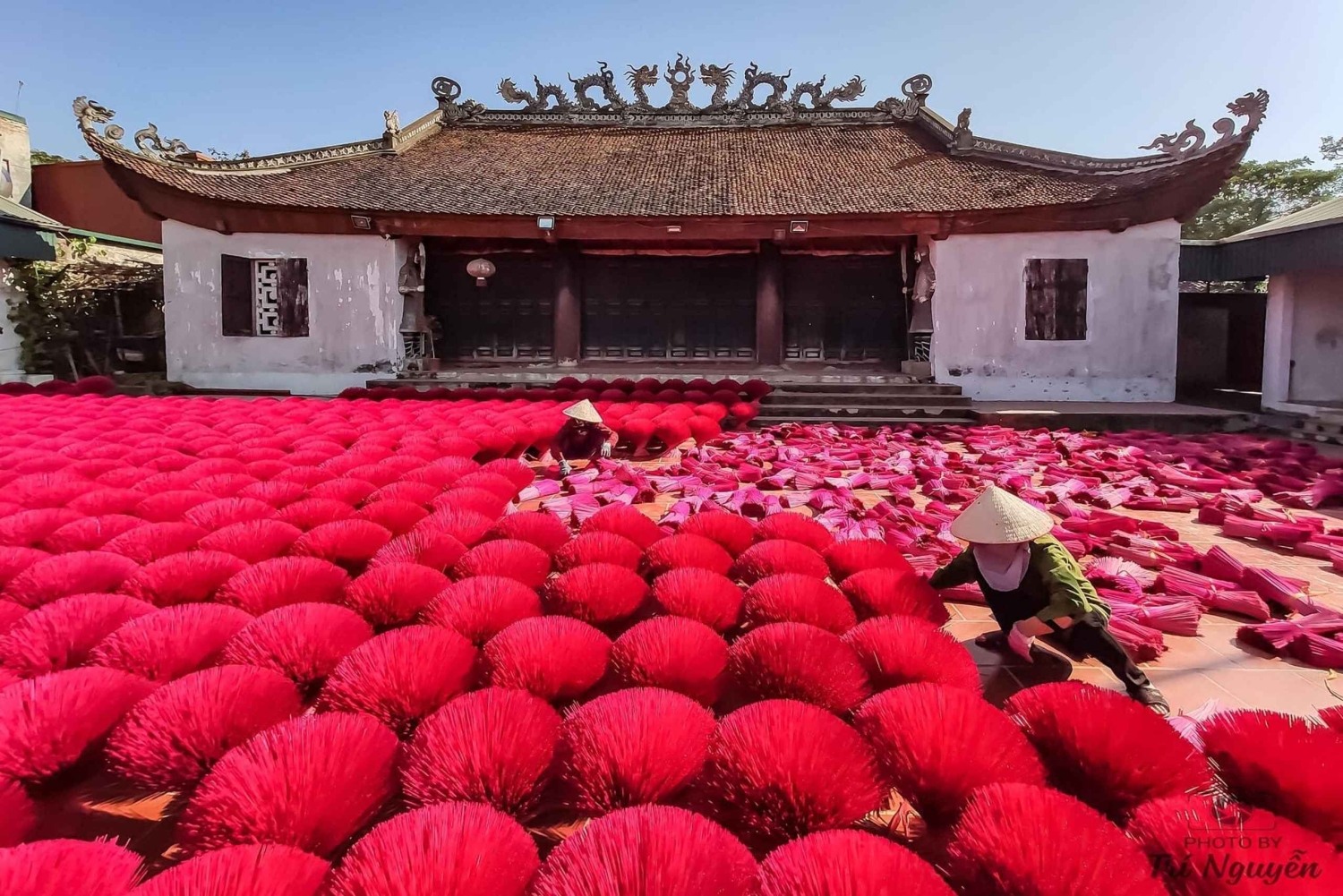 Partez pour le village de Quang Phu Cau, qui produit de l'encens depuis plus de 100 ans. Promenez-vous jusqu'au centre du village et découvrez comment les habitants fabriquent de l'encens de manière artisanale et familiale. Rencontrez une famille spécialisée dans la teinture de bâtons d'encens et admirez les paquets d'encens colorés.