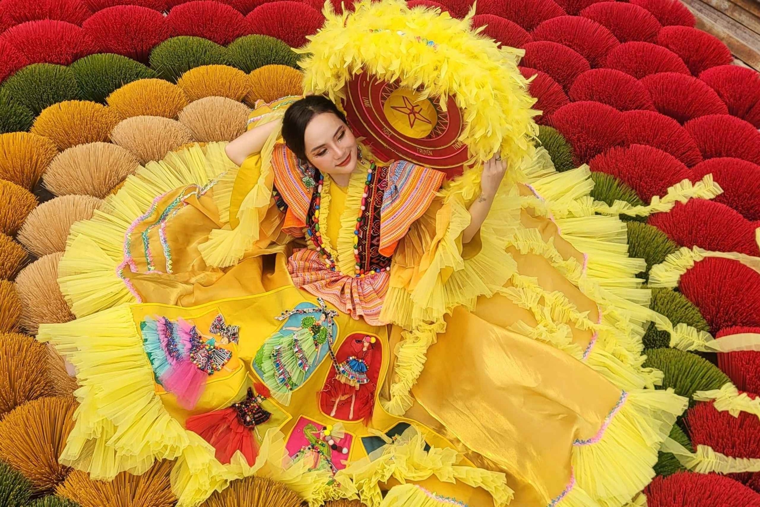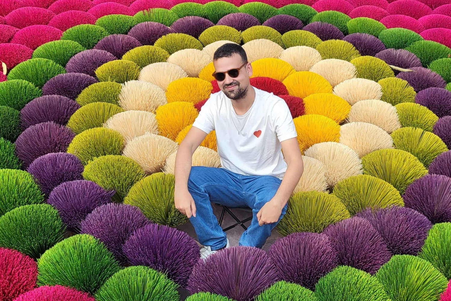Partez pour le village de Quang Phu Cau, qui produit de l'encens depuis plus de 100 ans. Promenez-vous jusqu'au centre du village et découvrez comment les habitants fabriquent de l'encens de manière artisanale et familiale. Rencontrez une famille spécialisée dans la teinture de bâtons d'encens et admirez les paquets d'encens colorés.
