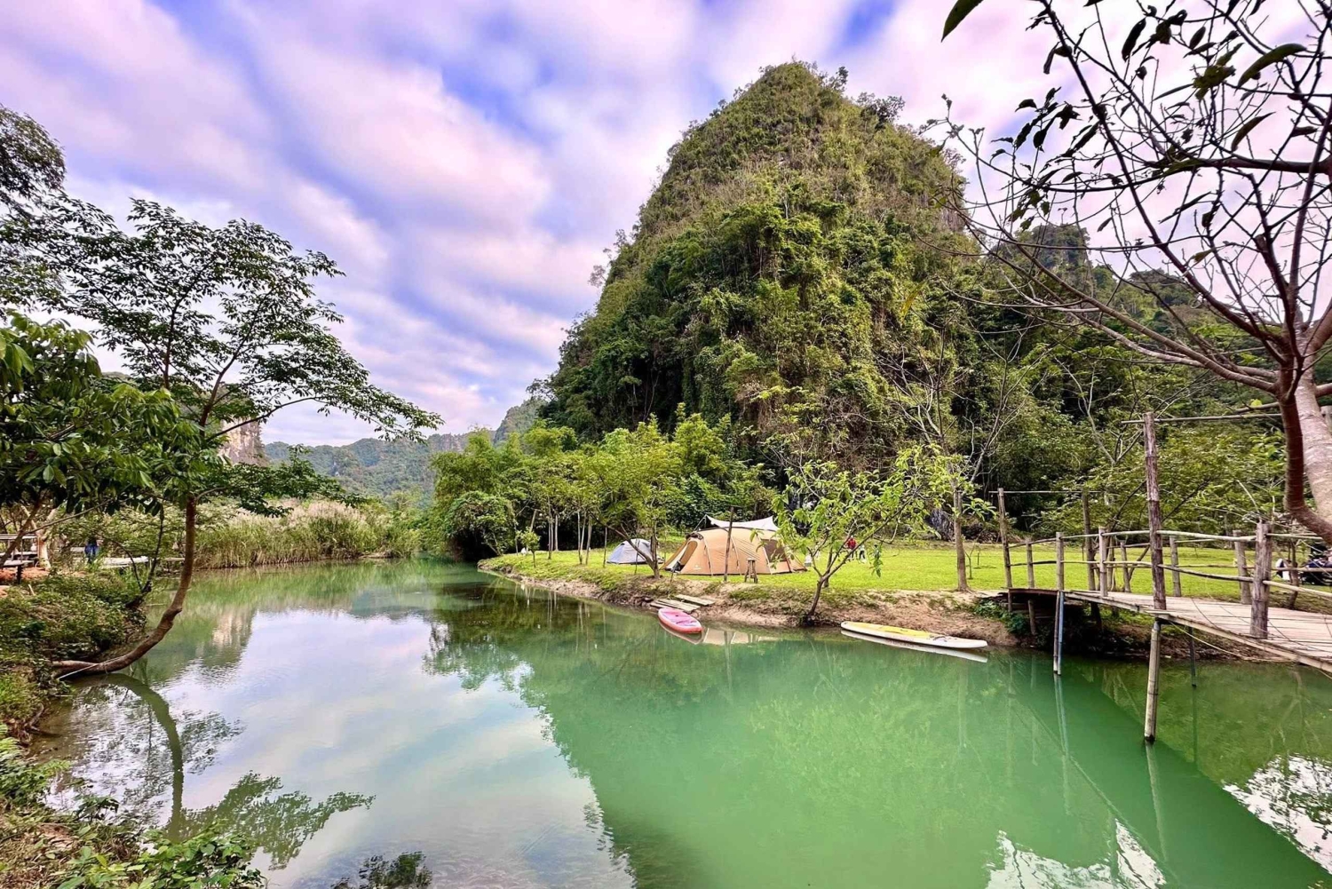Après avoir exploré la cascade, savourez un délicieux dîner dans un restaurant local. Dans la soirée, vous aurez la possibilité d'explorer Moc Chau par vous-même ou de participer à un feu de camp avec musique ethnique traditionnelle, danse et vin de riz (à vos frais). Veuillez passer la nuit à Moc Chau.
