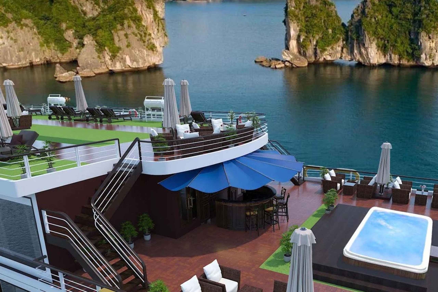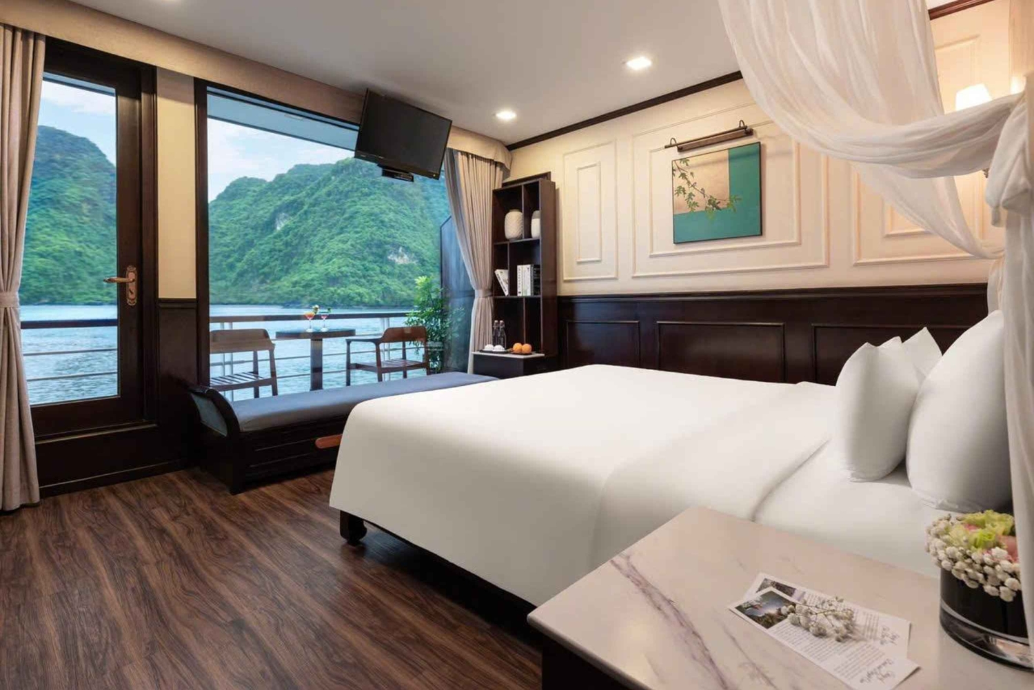 Questa crociera di lusso di 2 giorni ti invita a esplorare acque color smeraldo punteggiate da isole calcaree, a fare kayak in grotte tranquille e a rilassarti su un ponte illuminato dal sole con una tazza di tè al tramonto. Dai corsi di cucina pratica al tranquillo Tai Chi all'alba, ogni momento a bordo unisce relax, cultura e meraviglie naturali in un viaggio indimenticabile.