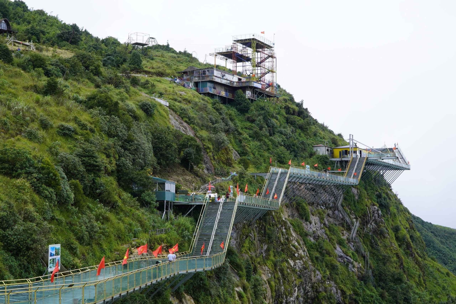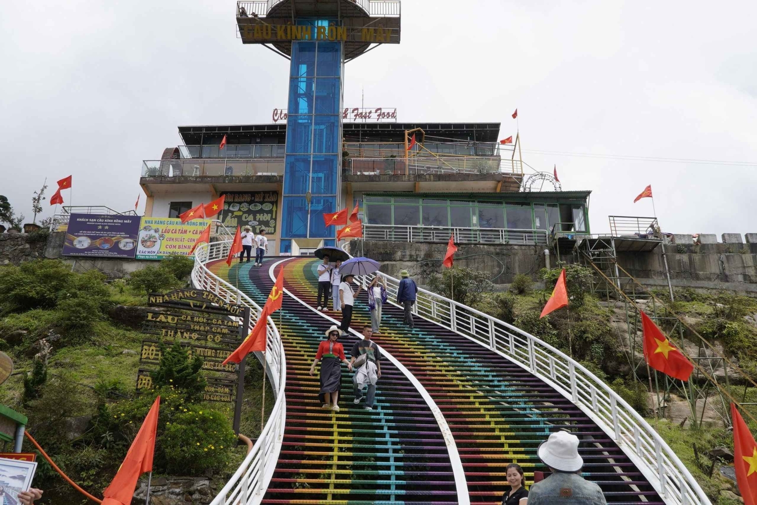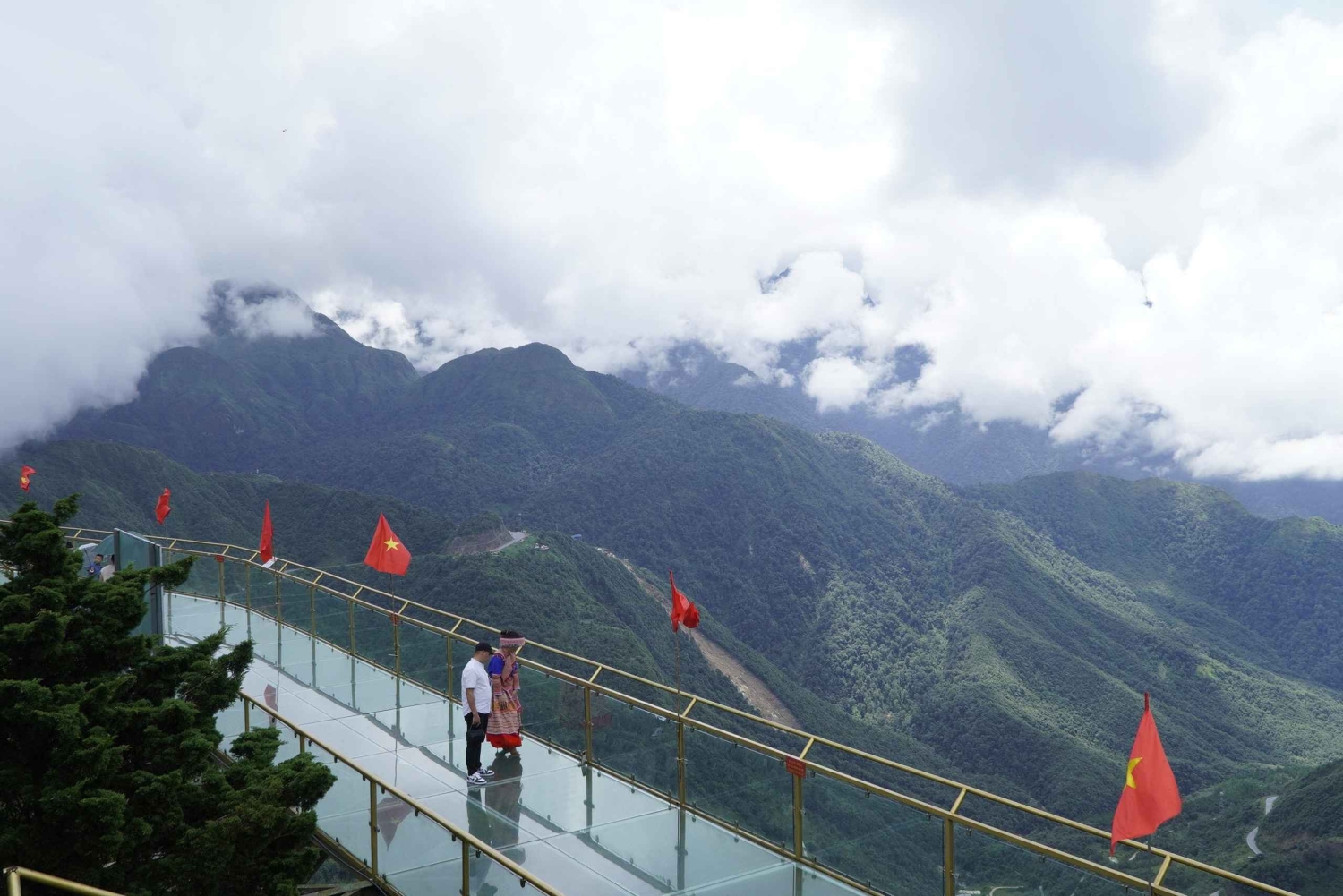 Dopo la colazione in hotel, fai il check-out e parti per il ponte di vetro Rong May. Sali sull'ascensore di vetro fino a 2.200 m al passo O Quy Ho e attraversa il ponte di vetro, godendoti una vista mozzafiato sulle montagne. Scatta foto uniche sul ponte di vetro più alto del Vietnam nord-occidentale.