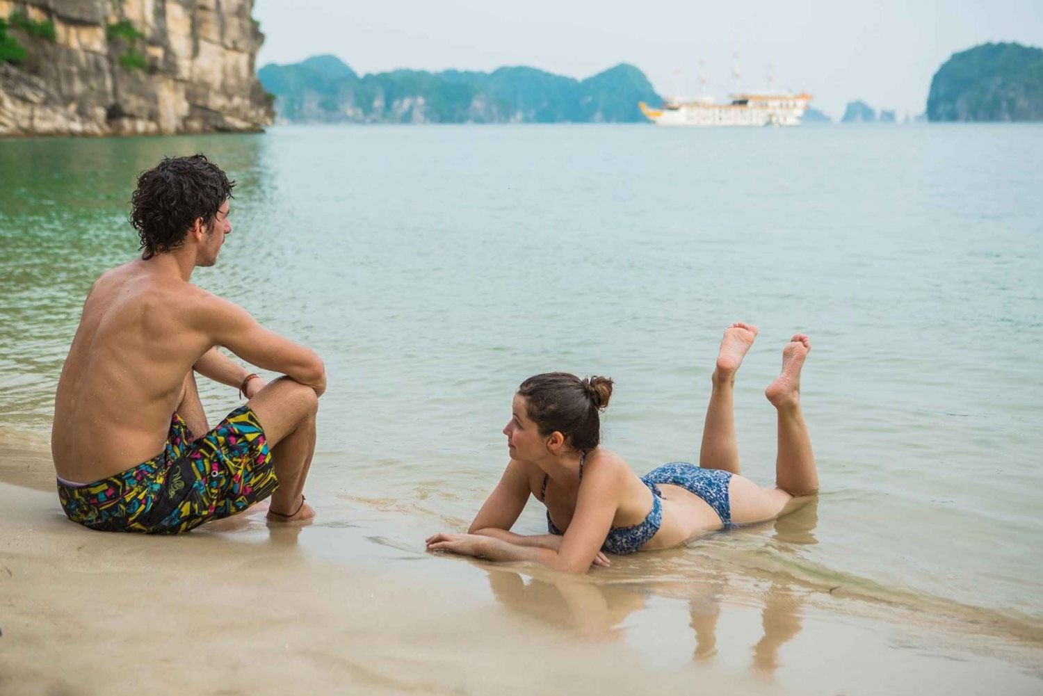Goditi una crociera di 2 giorni tra le spiagge sabbiose, le grotte e le montagne della Baia di Ha Long. Parti da Hanoi e prova una serie di attività, tra cui kayak, nuoto, cucina e pesca di calamari.