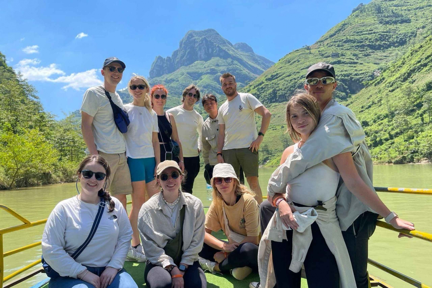 La giornata inizia con la colazione in un ristorante locale alle 8:00 e, se è il fine settimana, visitiamo il mercato domenicale di Dong Van. Poi continuiamo il nostro tour e attraversiamo il Passo del Cielo, il Passo Ma Pi Leng, facendo un giro in barca nel fiume Nho Que e nei villaggi Hmong con viste pittoresche. Facciamo una pausa pranzo nel villaggio di Mau Due prima di dirigerci verso il villaggio di Du Gia, dove attraverseremo il passo di Sa Li, il punto panoramico di Lung Ho e visiteremo la bellissima cascata di Du Gia. Effettuiamo il check-in in una casa dell'etnia Tay nel villaggio di Du Gia, dove consumeremo una cena in stile familiare.