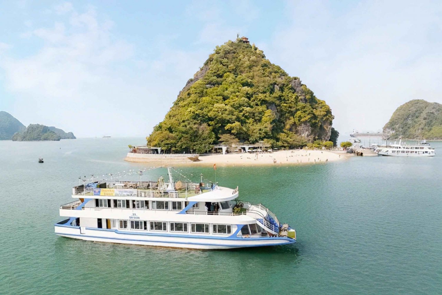 15.15: Visita l'Isola TiTop con la sua spiaggia sabbiosa. Puoi fare il bagno qui o salire in cima all'isola per visitare tutta la baia di Halong.