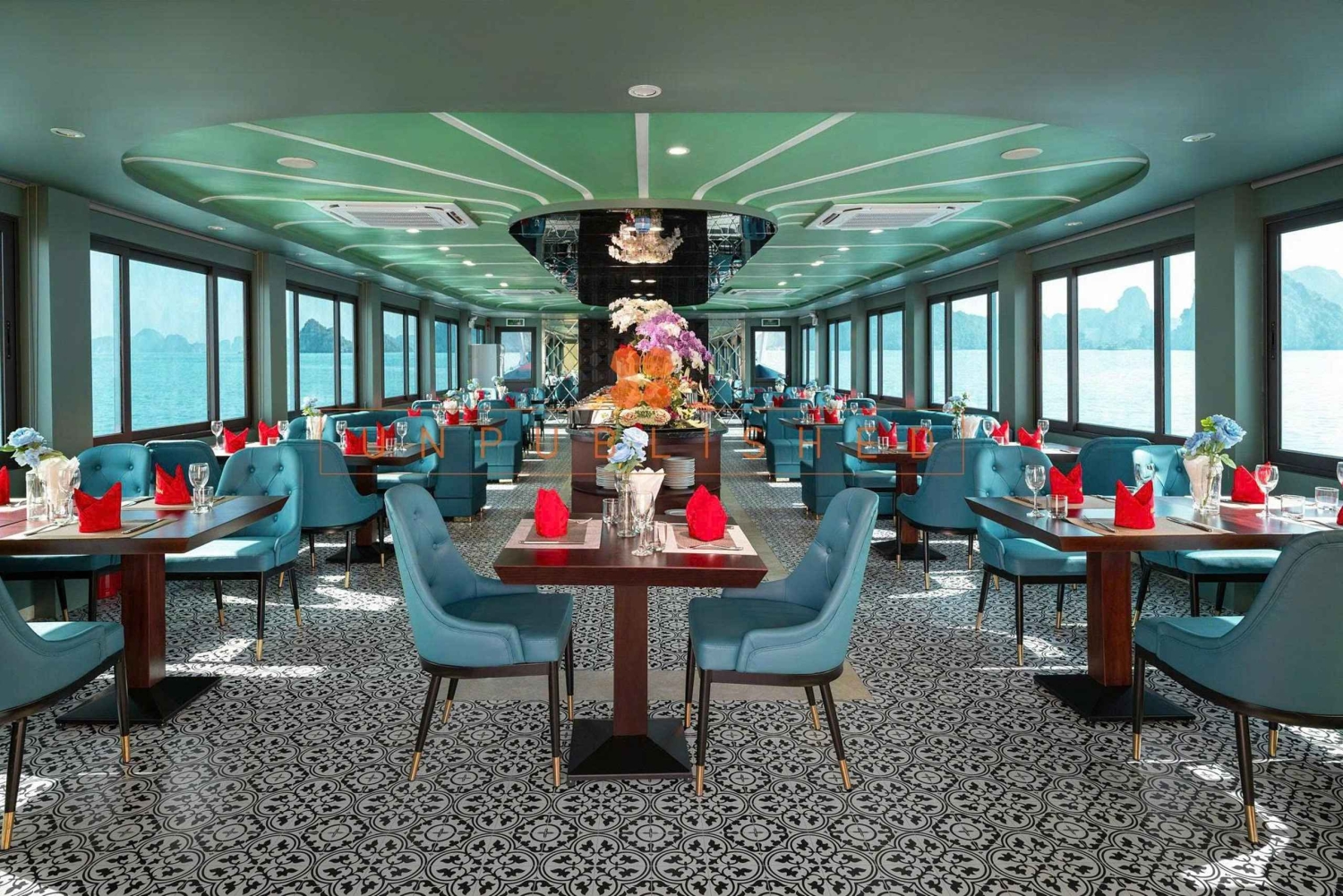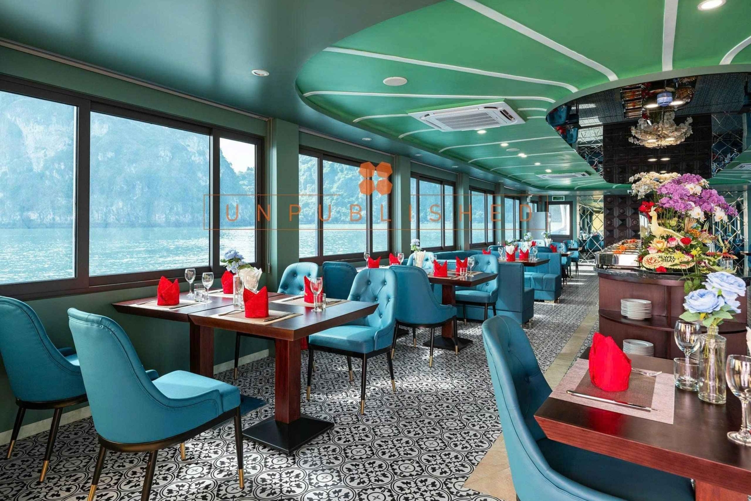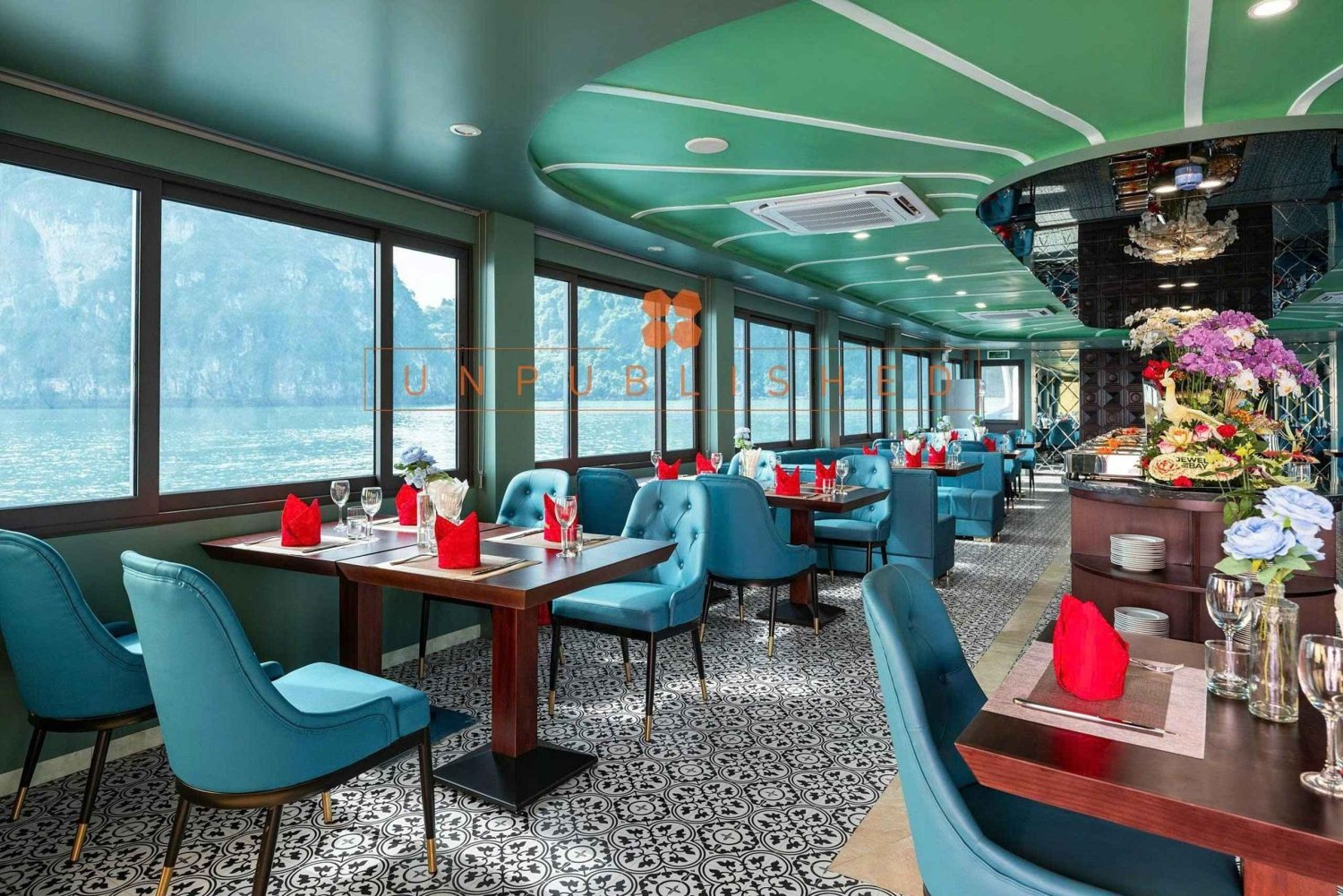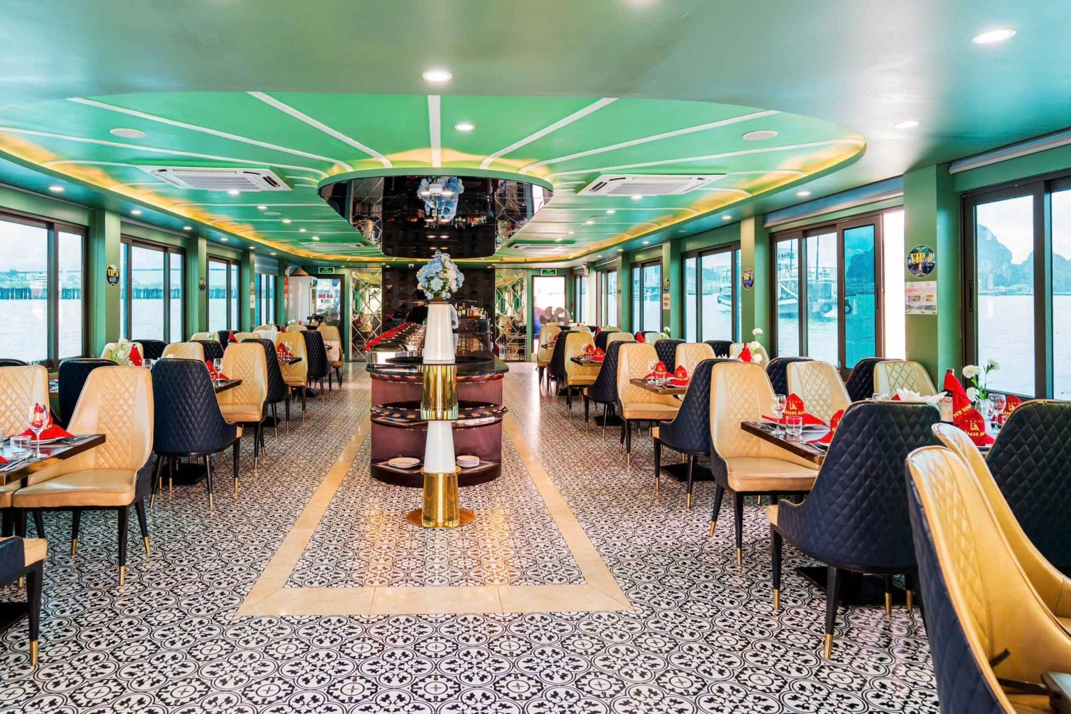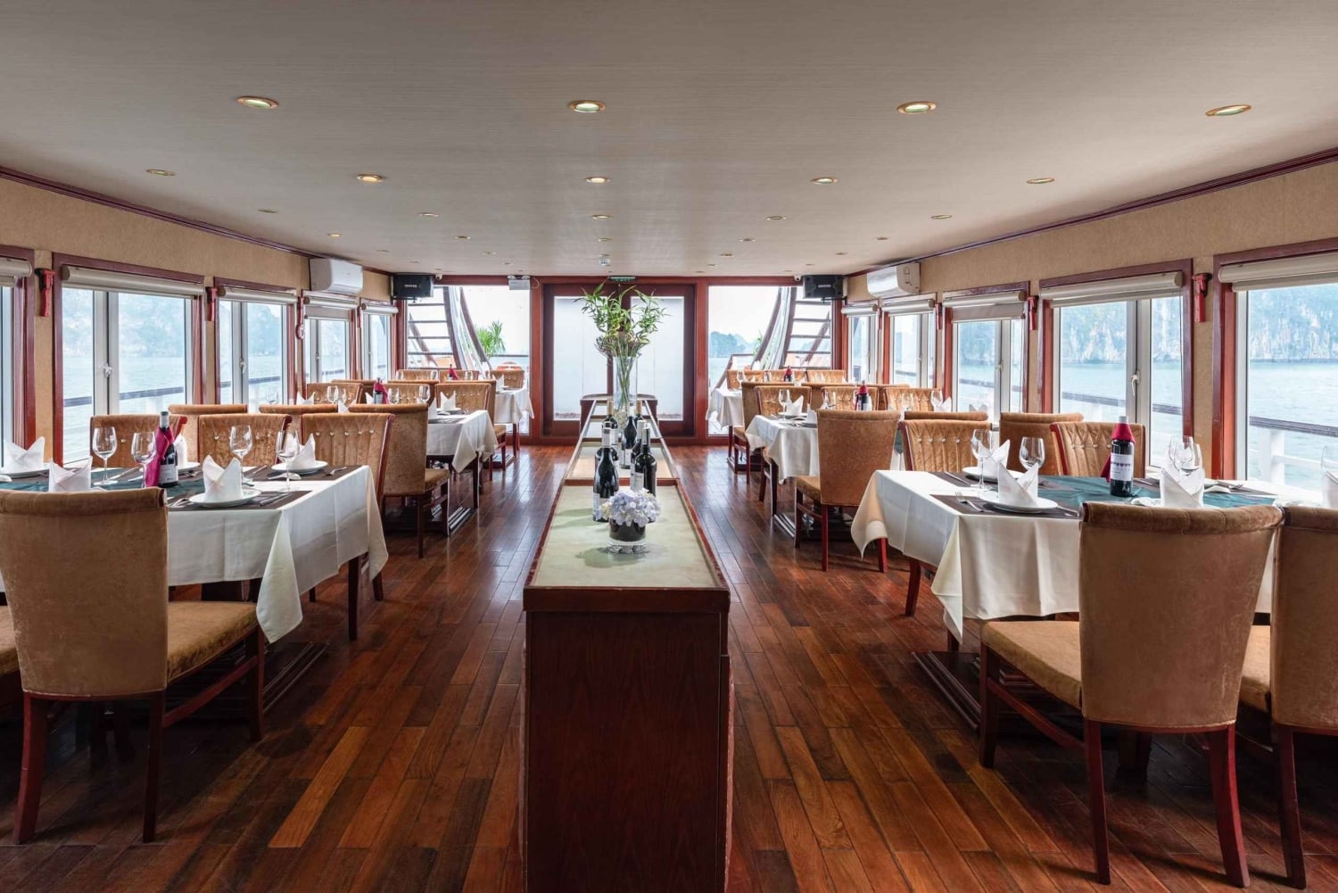 Arriva al porto di Tuan Chau, sali a bordo della tua nave e naviga attraverso le acque turchesi oltre fantastiche formazioni rocciose. Immergiti nella bellezza dei dintorni mentre ti godi un pranzo tradizionale vietnamita a bordo.