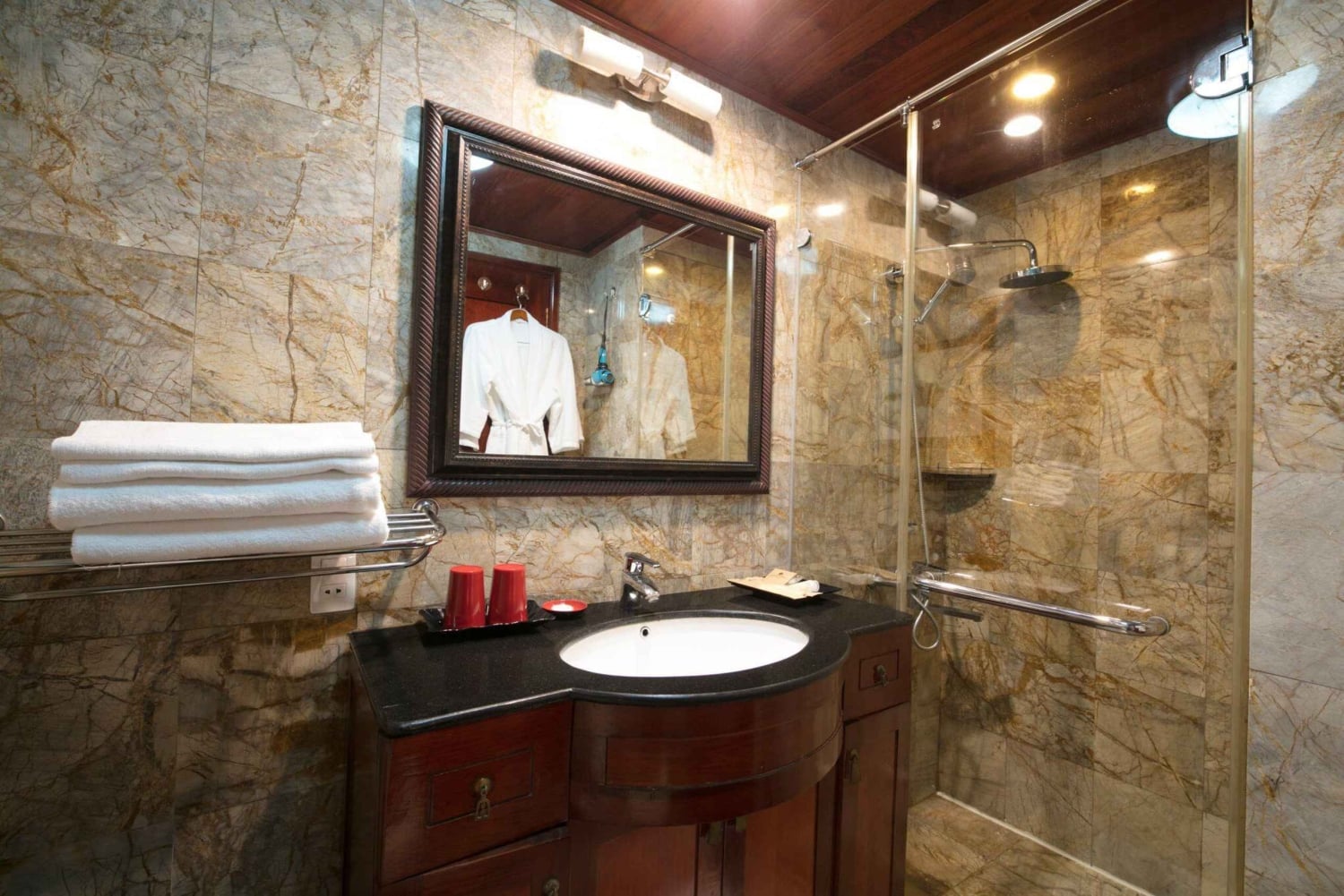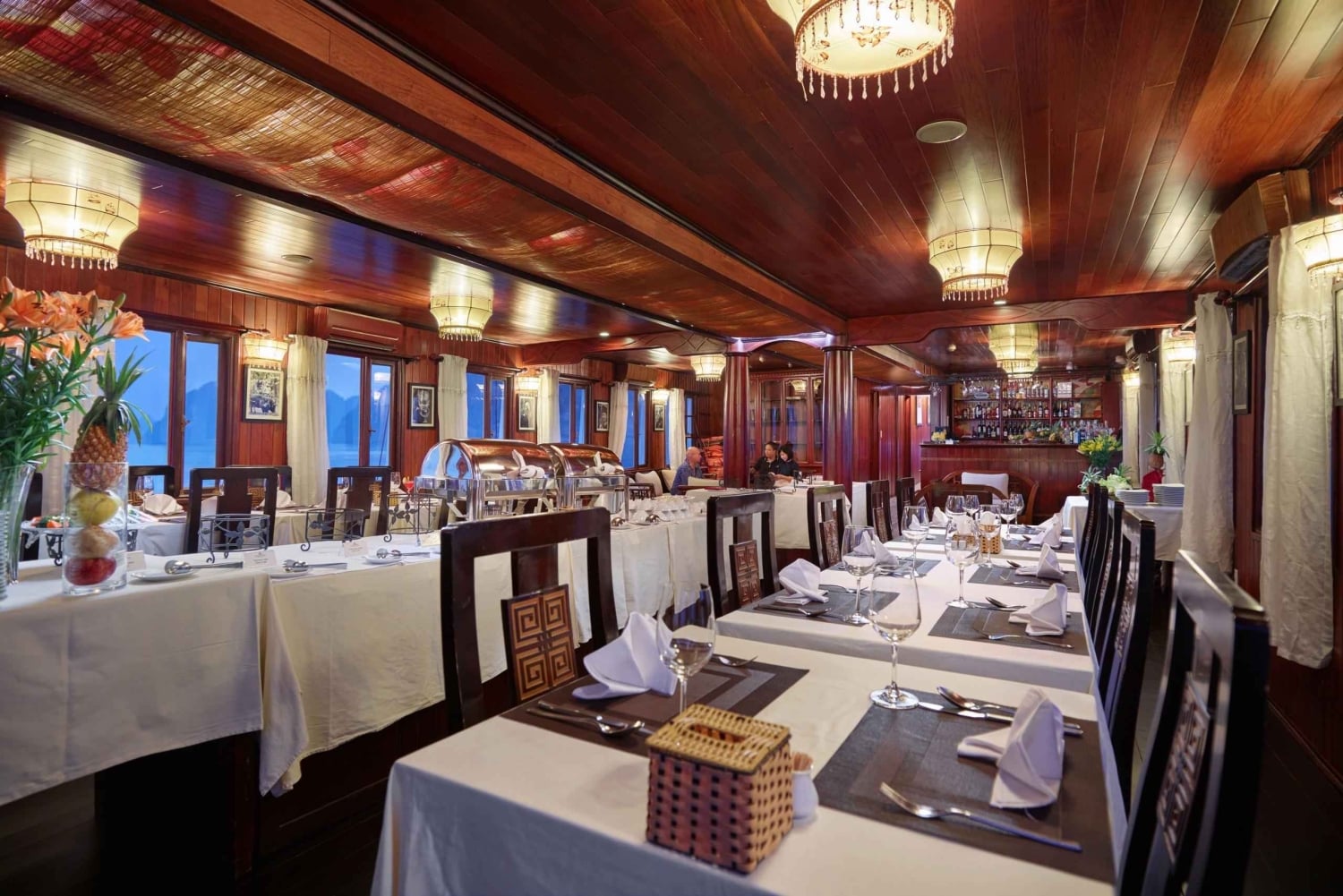 Una volta tornato a bordo, fai un pranzo in stile fusion mentre navighi verso il porto di Hon Gai. Incontra lì il tuo autista e torna ad Hanoi.
