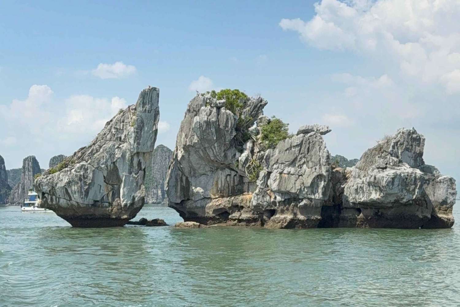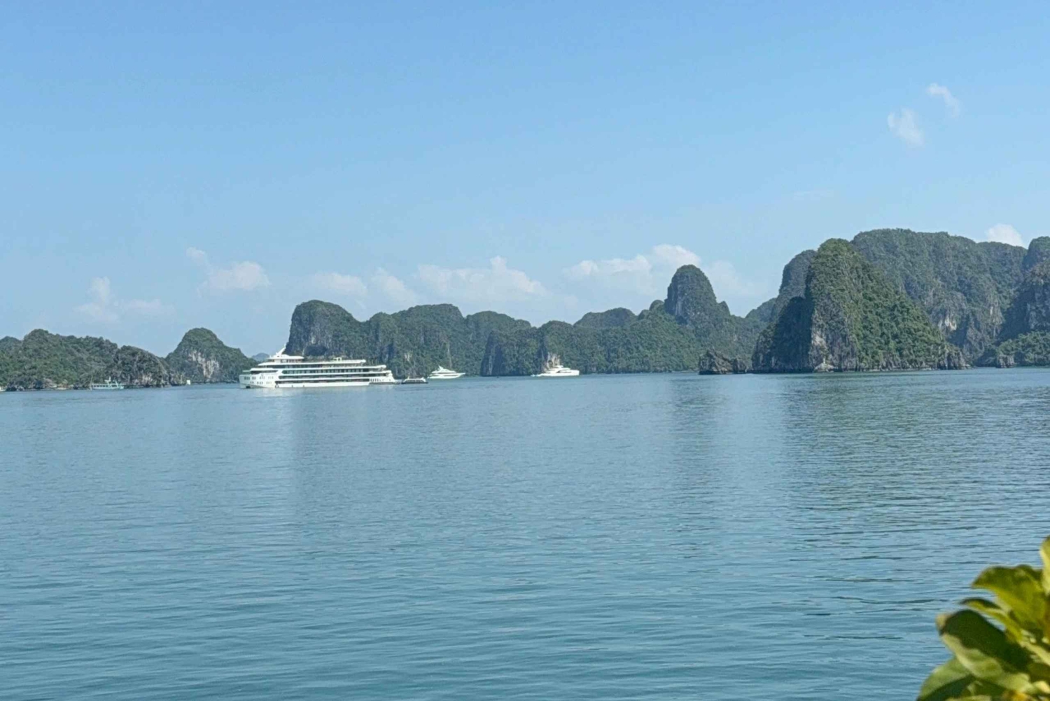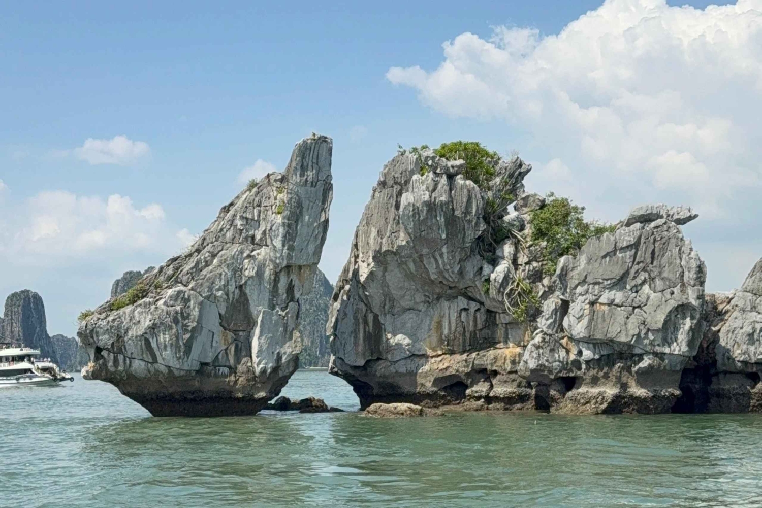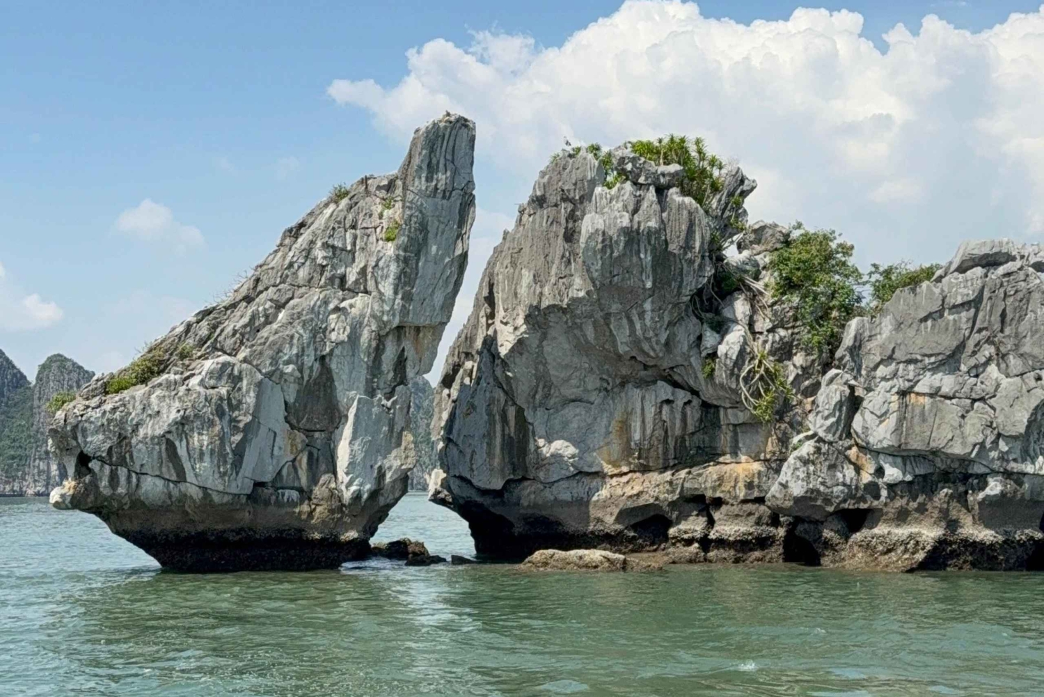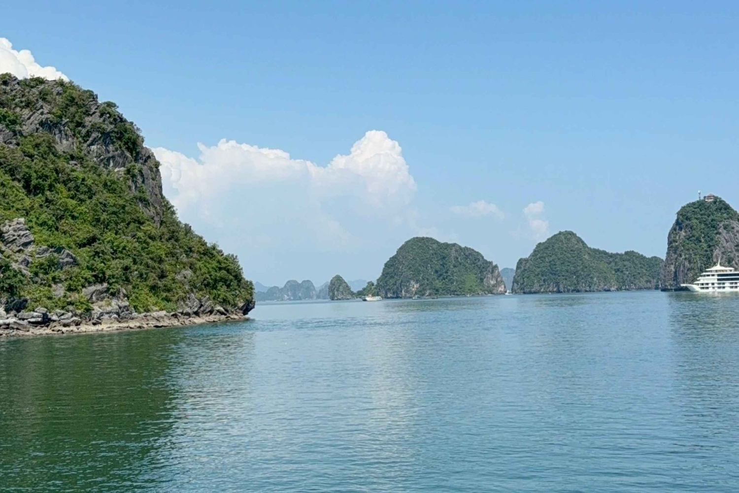 Goditi un pranzo delizioso mentre navighi nella parte più tranquilla della Baia di Ha Long, passando accanto a formazioni iconiche come l'isolotto del Dito, l'isolotto della Candela e migliaia di torri calcaree che emergono dal mare.