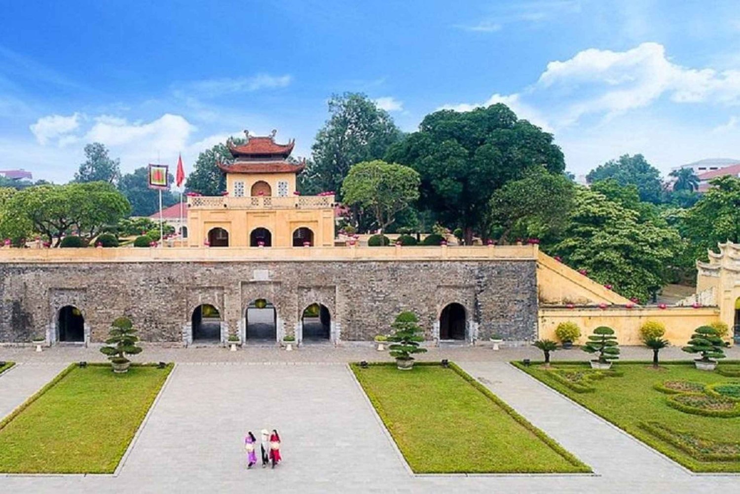 Drive by key city landmarks, including the Hanoi Flag Tower, Ho Chi Minh Mausoleum, Ba Dinh Square, the Opera House, Long Bien Bridge, West Lake, Phan Dinh Phung Boulevard, Thang Long Royal Citadel, and the Yellow Cathedral.